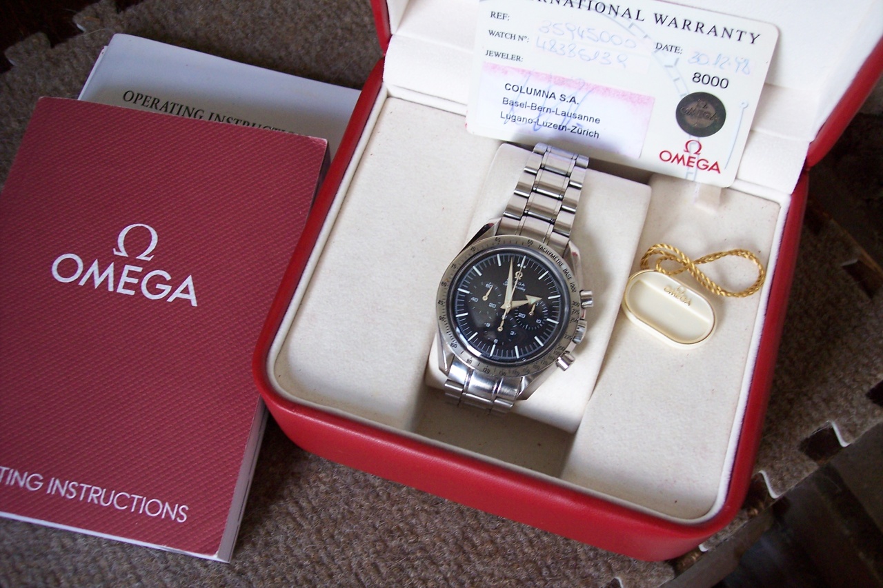 Продам в Москве или вышлю почтой/транспортной компанией замечательные часы, купленные в конце прошлого век в Швейцарии. Великолепный хронограф с ручным подзаводом ,на оригинальном Омеговском калибре с родиевым покрытием. Диаметр без головки-42 мм.Носились бережно, ход безукоризненный, естественные следы использования присутствуют. Впридачу к часам дам запасное ОРИГИНАЛЬНОЕ стекло в оригинальной невыскрытой упаковке. На все вопросы отвечу и любые дополнительные фото вышлю Вам на почту. Браслет не укорачивался .Подробности можно увидеть по ссылке