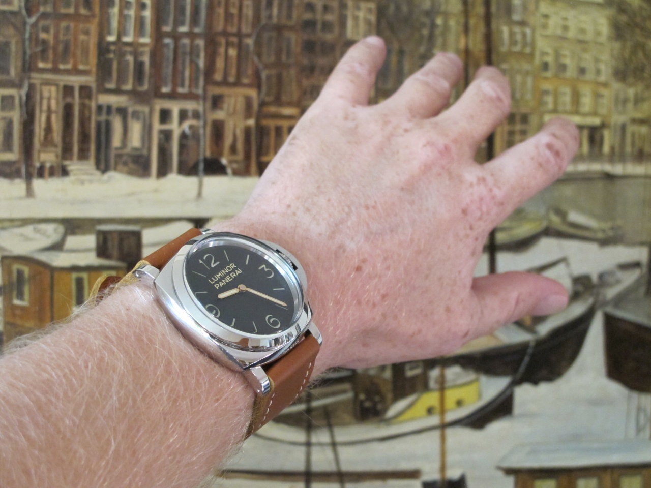 С ПАМом началось все года два назад. Увидел фото – понравились сразу, без вариантов. Но решение (на тот момент казалось правильным) было принято такое: на малую руку (17.5) - 40мм., и не новый, для пробы. Т.е. получился 048. Пришли из ломбарда (теперь в ломбарде возьму только, если увижу сам) убитые часы серии «J», все в царапинах и коцках, но это, в моих глазах, только добавило авторитета марке. В таком состоянии они еще и ходють?! Однако часы честно отходили больше года всякой эксплуатации (катание по гальке на волнах в шторм и т.п.). Не часы, а кастет, по ощущениям. Никаких проблем, только шрамов на железе добавилось. Что меня удивило – ушли, почти за что пришли, туда-же, т.е. лихвидные, как мало хто. Вот и пришла пора приобрести первый новый ПАМ!