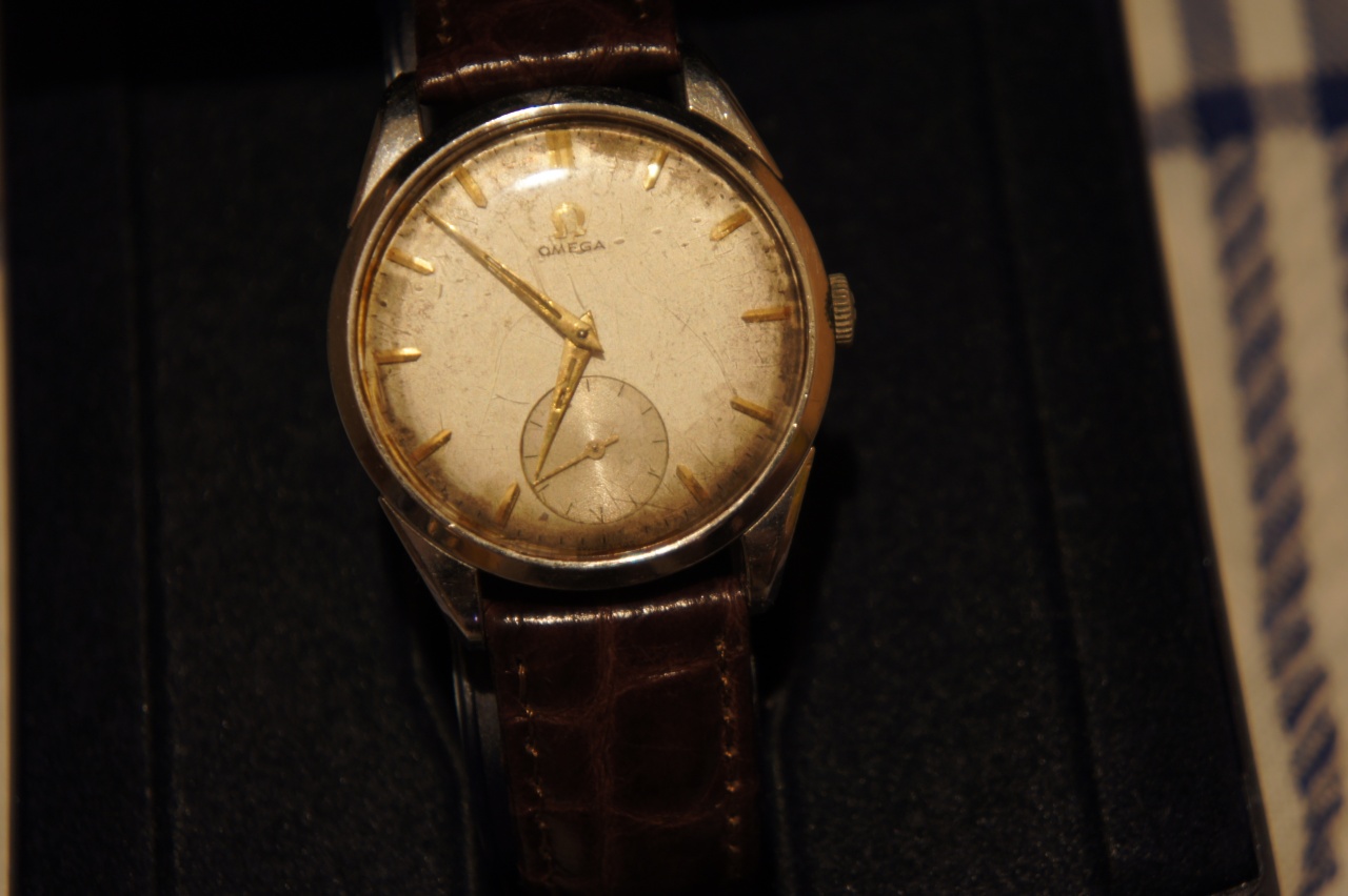 Доброго времени суток коллекционерам и любителям часов. Предлагаю Вашему вниманию винтажные механические часы Omega. Внешнее состояние не очень, но технически все превосходно. Диаметр корпуса 35 мм без заводной головки. Ремень и бакля не родные. Судя по номеру калибра часы были сделаны в конце 50-х годов ХХ века, на задней крышке сделана гравировка. Более подробные фото и информацию предоставлю по запросу. Часы находятся в Москве, за счет покупателя могу отправить куда угодно.