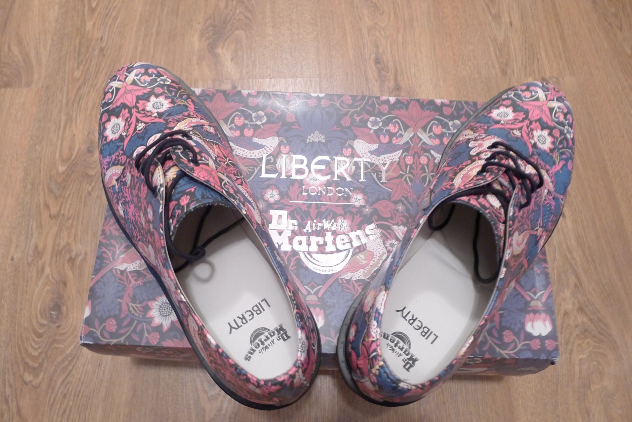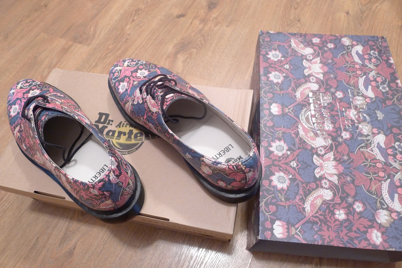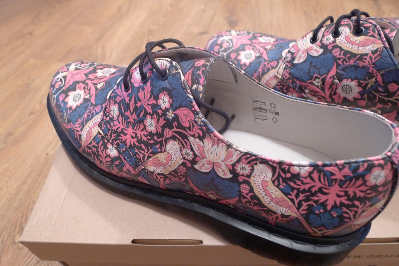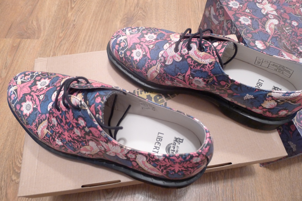Очень ограниченная серия в сотрудничестве с Liberty London, в России не было и не будет. Размер 46, но, по факту, 45-45.5. Расцветочка - Navy Chery Red Strawberry Thief Leather - прямо скажем "на любителя", но смотрятся - бесподобно. Очень.