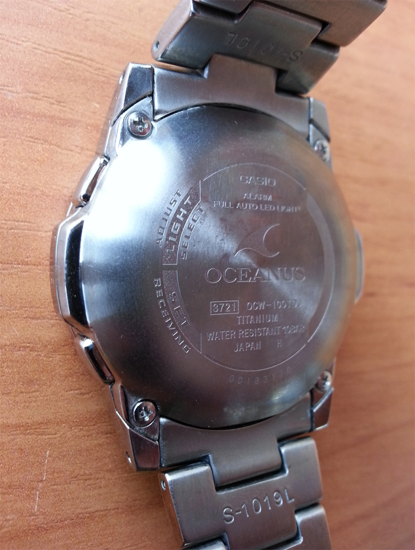 Продаю внутрияпонские Casio Oceanus OCW-100TDJ. Полностью выполнены из титана (часы легкие). Обладают сапфировым стеклом, солярой (tough solar - солнечная батарея), радио синхронизацией, долгим люминофором (ночь держит), подсветкой и просто интересным дизайном. Ширина 41.8 мм. Стекло без царапин, корпус и браслет имеет легкие царапинки (глубоких и явных царапин нет). Браслет на моем 17.5 см запястье сидит свободно + еще 2 звена (2 см) прилагается. Думаю до 18-18,5 см. браслет легко увеличиться. Отправлю куда угодно любым удобным для вас способом. Ссылку с отзывами обо мне скину в лс по запросу.