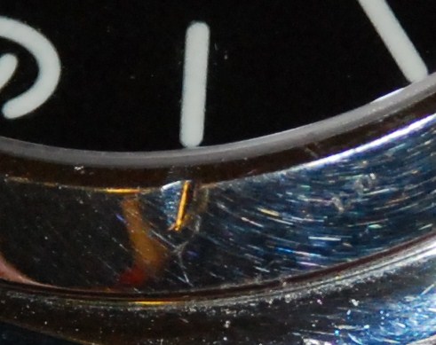 Про другие- более мелкие дефекты - говорить не приходится- случай обычный, но вот именно эта ВМЯТИНА при разборке часов и снятии безеля показалась Марианской Впадиной