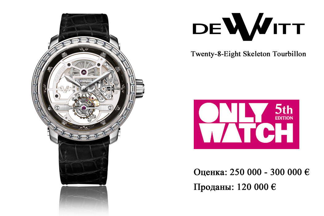 Скелетизированный циферблат, бриллианты, турбийон — и все это за 120 000 евро, при минимальной стоимости в 250 000. Предпоследнее место у DeWitt Twenty-8-Eight Skeleton Tourbillon.
