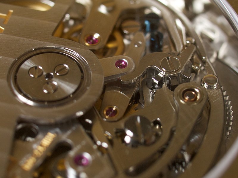 Размер корпуса 38х38 мм. 31 камень. Калибр 36 (36 000 колебаний/час), противоударная система. Функции: часы, минуты, секунды, дата, хронограф с точностью 1/10 секунды. Сапфировое стекло с антибликовым покрытием. Ремешок из натуральной крокодиловой кожи. Прозрачная задняя крышка. Центральная секундная стрелка хронографа. 12-часовой и 30-минутный счетчики хронографа. Часовые стрелки и метки с люминесцентным покрытием. Водостойкость 50 метров. Серийный номер на задней крышке корпуса часов. Запас хода 42 часа.