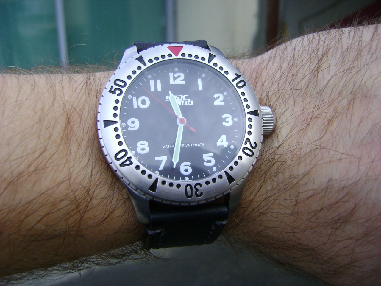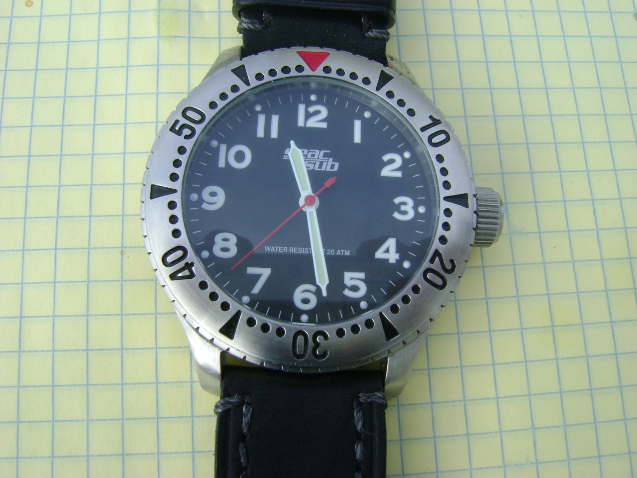 часы произведены итальнской фирмой по производству подводного оборудования seac sub. довольно крупные 45 мм чистой нержавейки. японский кварц от Citizen. в комплекте 2 ремешка кожаный и нато. головка и крышка завинчивается wr200m номерные. на форуме таких не видел ну и немного фото
