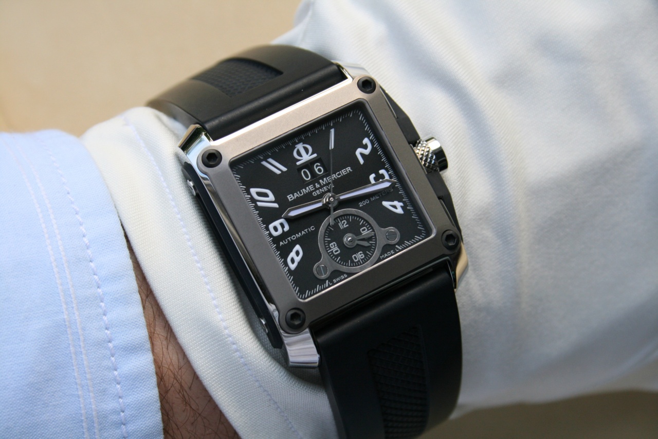 < < < BAUME&MERCIER HAMPTON SQUARE MAGNUM XL DUAL TIME ** сталь\титан ** каучук > > >