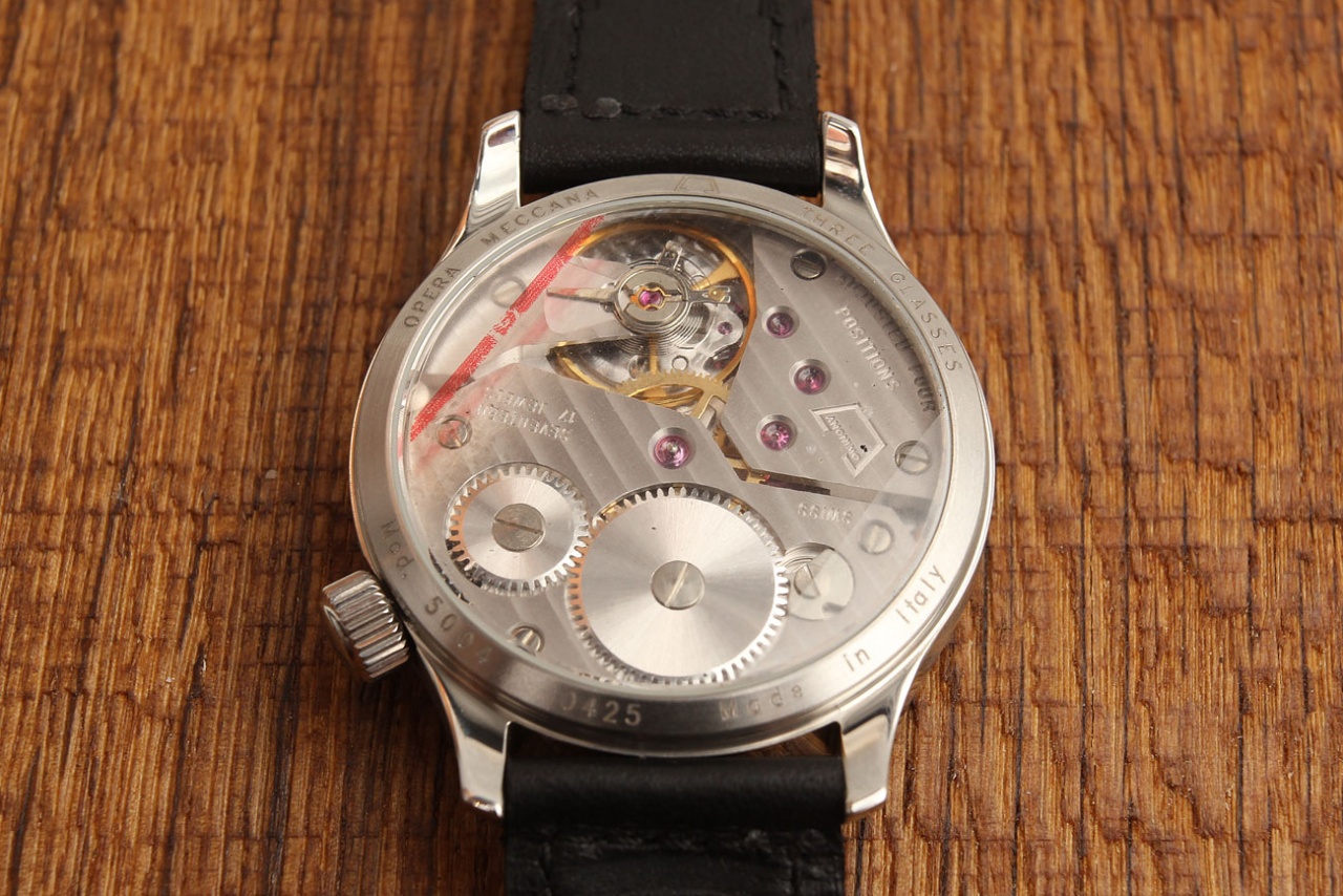 Интересной особенностью данных часов является окошко с предупреждающим красным индикатором (фото 4), благодаря которому видно закрыта ли головка подзавода или нет.