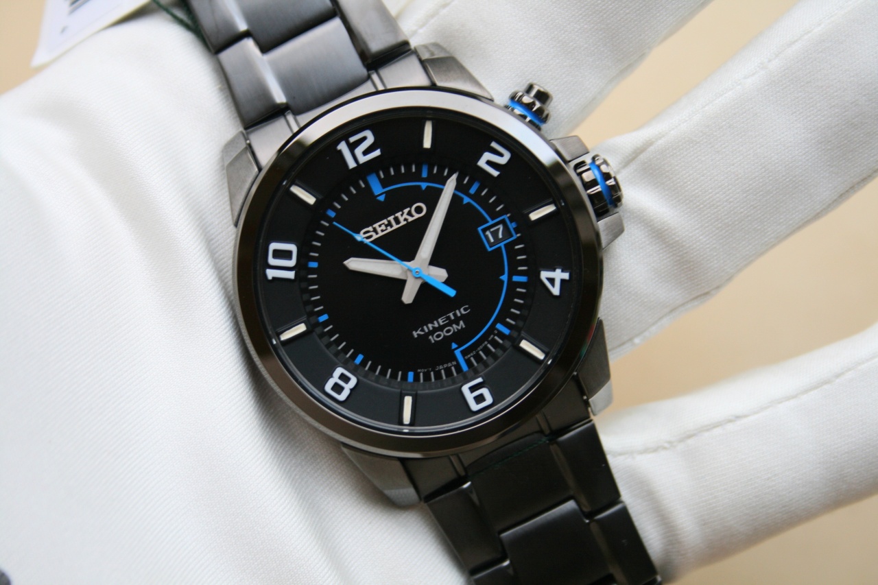 ~~~~ [полностью черные 42 мм] SEIKO KINETIC SKA555 ** синие индексы ** браслет ~~~~