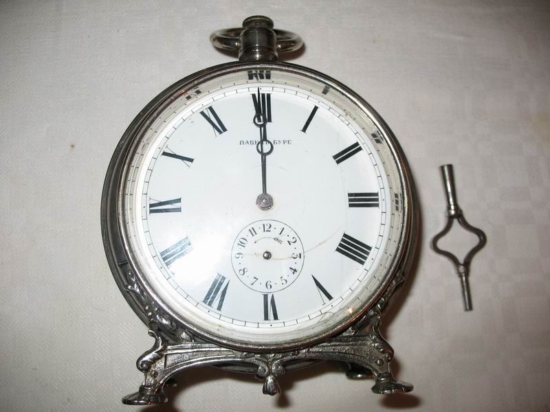 На циферблате надпись - Павел буре. Секундной стрелки нету. Механизм не работает.