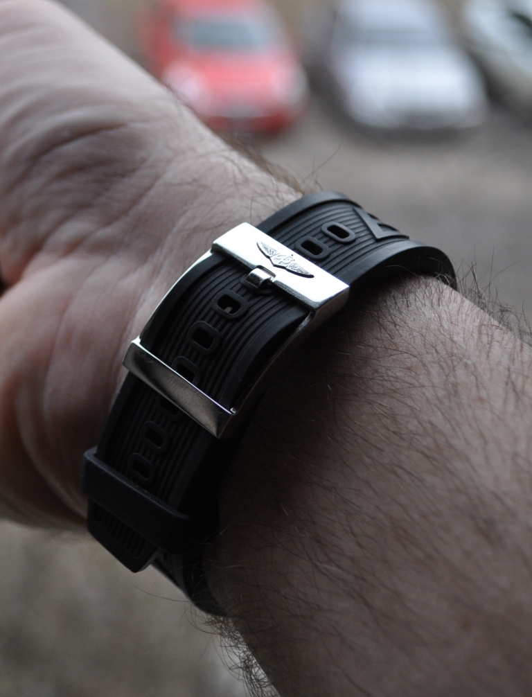 До Breitling Chronomat Evolution я долгое время носил часы марки Rolex, и периодически мне очень не хватало возможности одеть на них кожаный ремень. В часах Breitling все это предусмотрено производителем, во всяком случае, на данную модель кроме браслета, существуют каучуковый и кожаный браслет, причем кожаный возможен двух видов – черный аллигатор и черный гладкий. Застежки также предусмотрены разных типов: обычный «шип» украшенный логотипом, раскладная (очень качественная и удобная) для кожи и раскладная для каучука. Стоит ли говорить о том, что часы находятся в luxury ценовой категории и соответственно все комплектующие и аксессуары поражают воображение своими расценками, про цены в РФ нечего и говорить, они просто «за гранью добра и зла» (с).