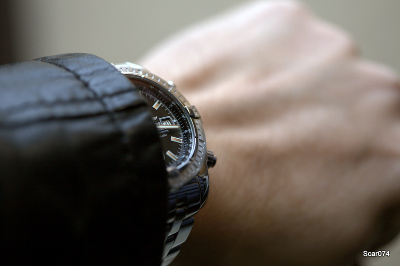 Часы безусловно обращают на себя внимание, опять же благодаря размерам они часто выползают из под рукава и нахально лезут окружающим в глаза. Хронограф сам по себе всегда заметен благодаря пушерам, здесь же «рожки» пушеров дополнены утонченностью отделки корпуса и стильным сочетание элементов и расцветок часов.