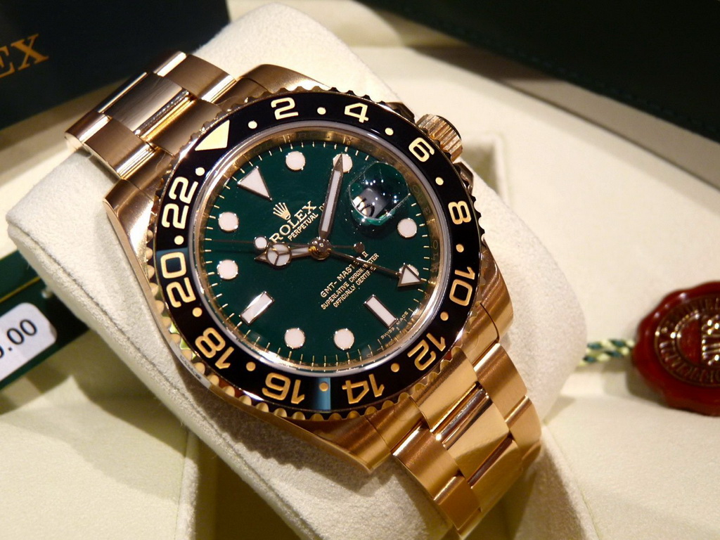 Rolex GMT-Master II в жёлтом золоте с зелёным циферблатом