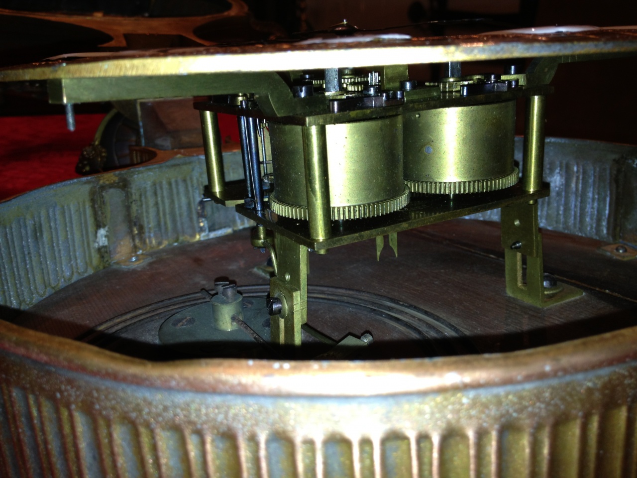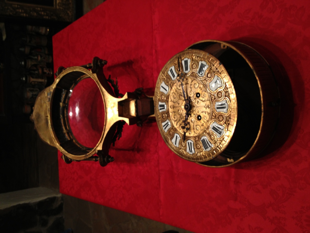 Добрый день форумчане! Привез себе из Франции Вот эти настенные часы. Дома их мне обслужили и запустили. Идут хорошо с боем и главное точно! Мастер сказал, что механизм стоит французский с маятником ЛеРой. Продавец говорил, что часы где-то 1870 г. Больше я ничего не понял. Корпус очень тяжелый из желтого металла, задняя стенка деревянная. Корона и все видимые части тоже металлические. Цифры на циферблате накладные, четверка написана как четыре палочки.