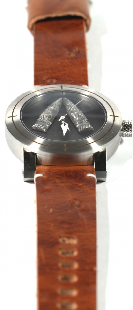 Модель часов Son of a Gun Werewolf Bullet от компании ArtyA привлекает внимание серебряной пулей, которая была выкована и разделена на части в полнолуние. Серебряная пуля может убить оборотня, и тем самым часы напоминают нам, что нужно ничего не бояться. А еще нужно помнить, что жизнь, как и серебро, — это огромная ценность и не нужно тратить ее впустую.