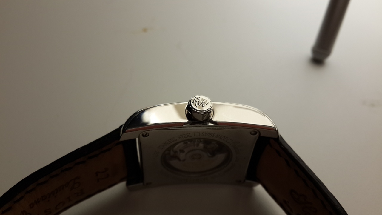 Люминисцентный циферблат и стрелки. Гильошированный циферблат. Дата. На застёжке гравировка "Raymond Weil". С внутренней стороны самих часов окошко, в которое видны все механизмы. По точности претензий никаких. Просто не прижились...