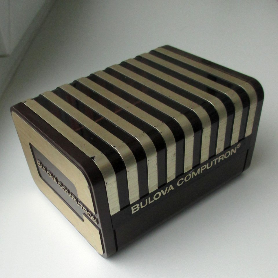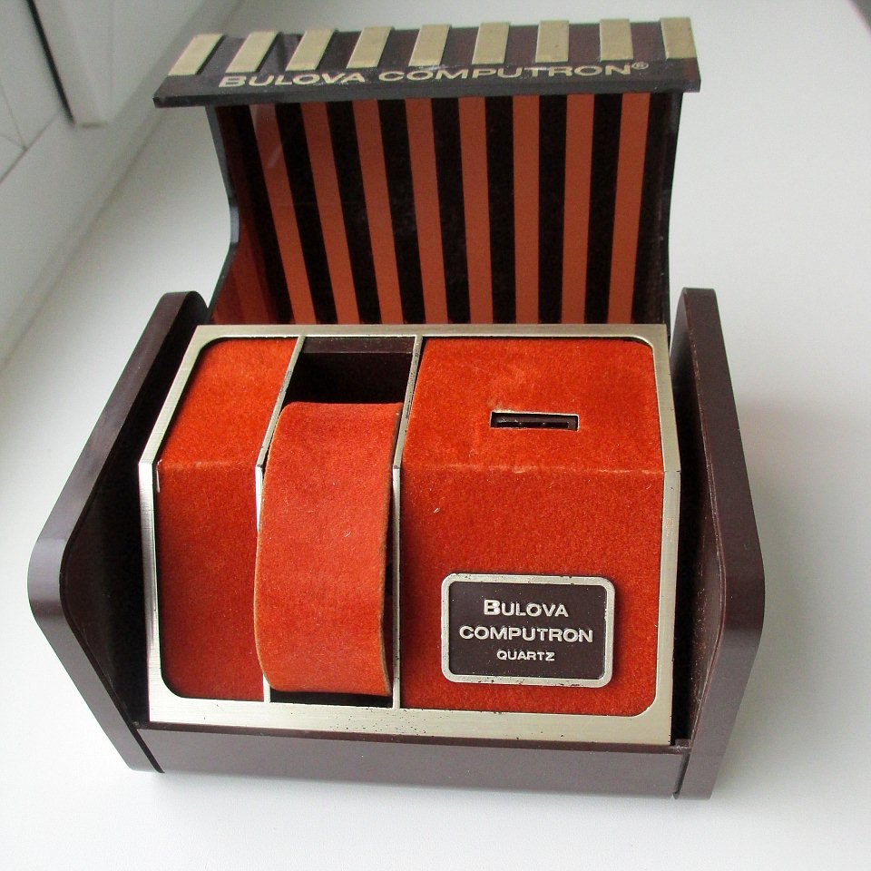 - Комплектность: только сами часы. В качестве бонуса приложу к часам столь же антикварную коробку от Bulova Computron