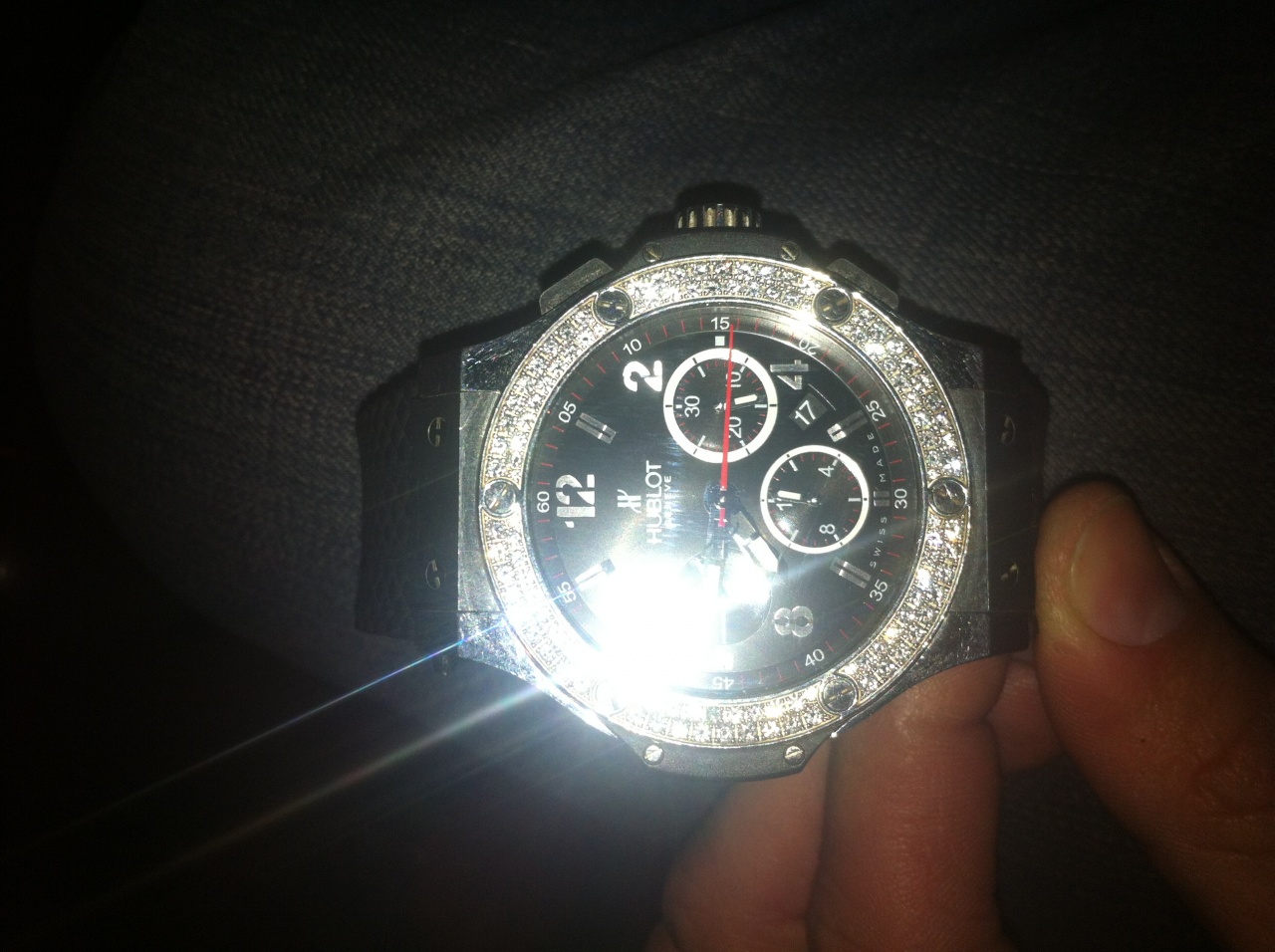 Всем доброго времени суток. Обратился товарищ с часами, попросил помочь опознать и цену определить. Фотографии пока страшные, может получится сделать более приличные. Корпус сталь, безель бриллиантовый. Показывали ювелиру, вроде подтвердил, что камни настоящие. Вопрос в том, что часы хотят продать. Утверждается, что покупались в Москве новые за 850 тыс.руб. Сейчас ни коробки, ни документов нет. На задней крышке номер, вот где его пробить можно - не знаю. Есть ли в России официальные представители марки, к кому обратиться можно? Копал сайт Hublot, но что-то не нашел или плохо искал.