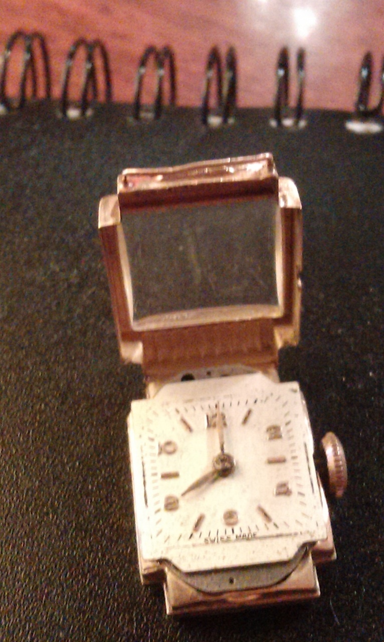 Подскажите если кто знает, что это за часы? Привезены в конце сороковых из германии. На циферблате кроме swiss made никаких надписей нет. Корпус или золотой или позолоченный (со слов тёщи, её родители после войны там некоторое время жили.) На корпусе открывается верхняя часть со стеклом, задней крышки как токавой нет. Фото плохого качества (на телефон делал), поэтому то, что написано на обратной стороне перерисовал. Сверху там надпись 18к, ниже 0,750,ещё ниже ,что-то вроде клейма - контур человеческой головы в каплеобразной рамке и ниже цифры 213. На механизме есть цифры 1201. Больше никаких надписей нет. Часы раньше были на ремешке.