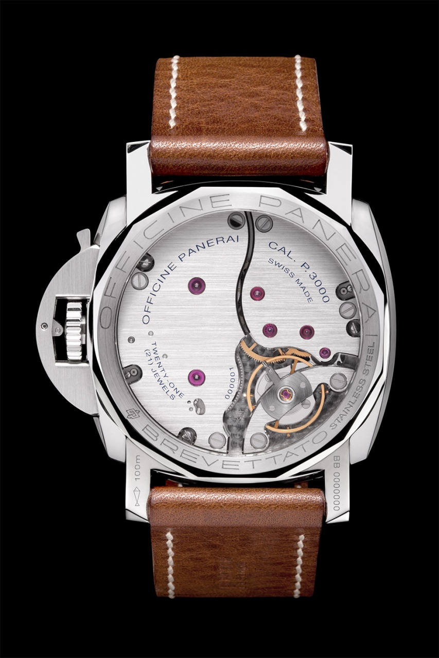 Механизм:Механика с ручным заводом, эксклюзивный калибр Panerai P 3000, 21 камень. Балансир Glucydur®, совершающий 21 600 полуколебаний в час. Противоударное устройство Incabloc®. Запас хода 3 дня.