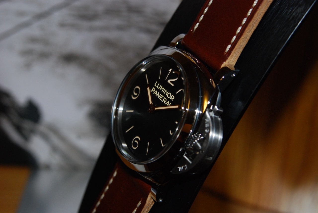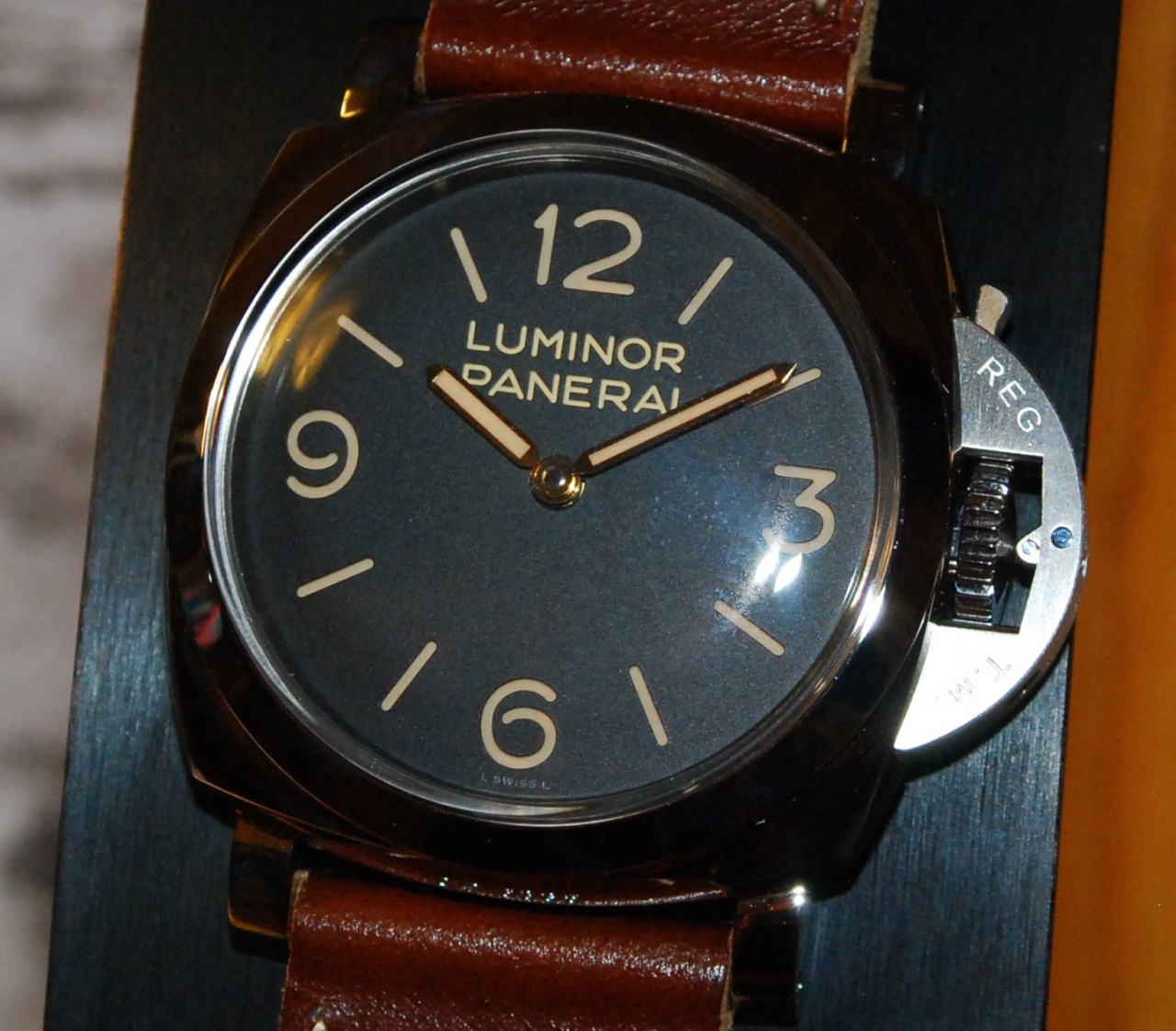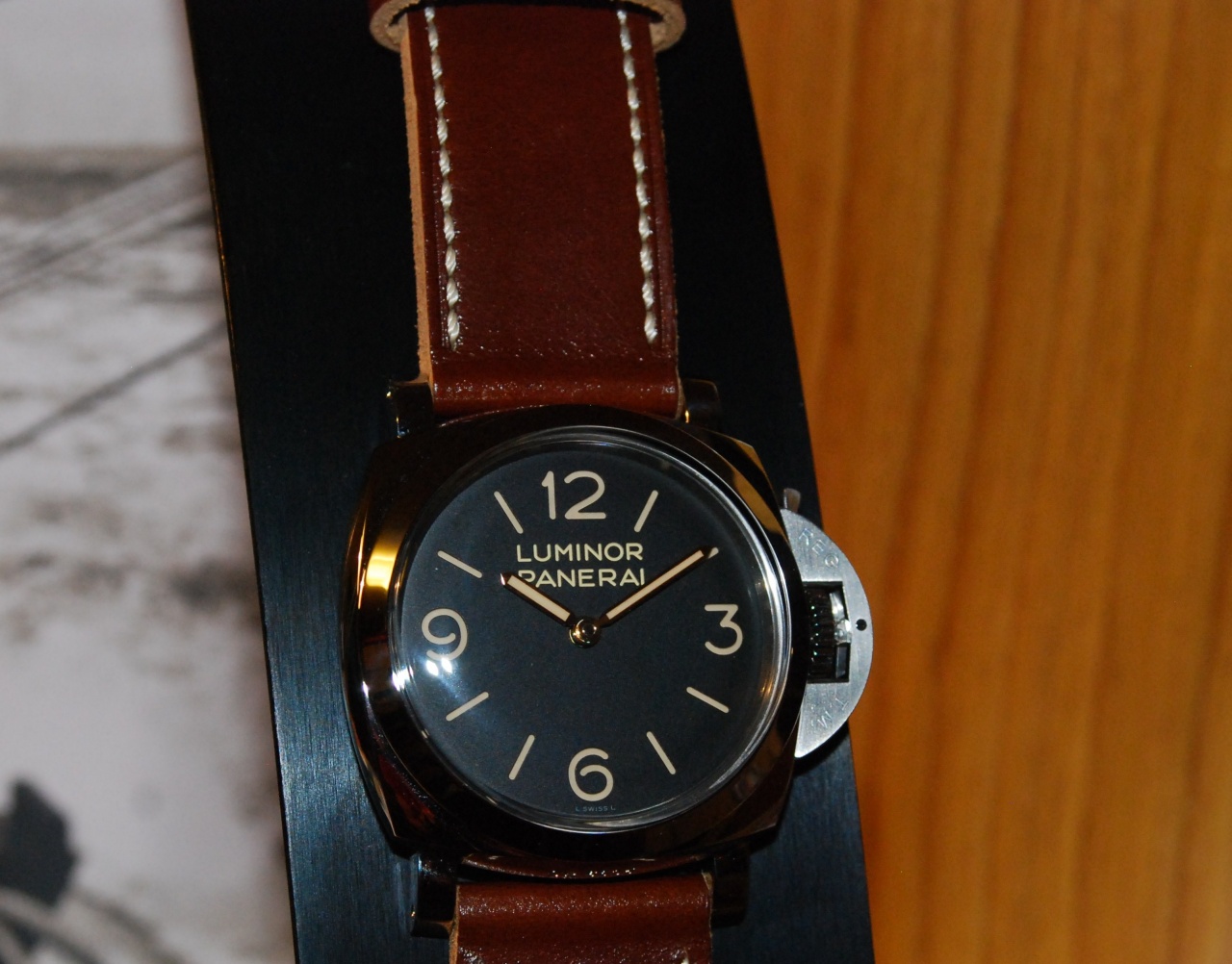 Достоинства: крупный и привлекательный, но очень удобный в носке корпус; фантастической красоты золотые стрелки; необычный бежевый цвет люминовы цифр и меток; два шикарных кожаных ОЕМ ремня в комплекте;часы очень узнаваемые, лаконичные, читаемые; соблюдены лучшие исторические традиции Панерай; надежнейший калибр с трехдневным запасом хода;запасное стекло в комплекте; часы не тяжелые и совершенно не утомляют руку при ежедневной носке.
