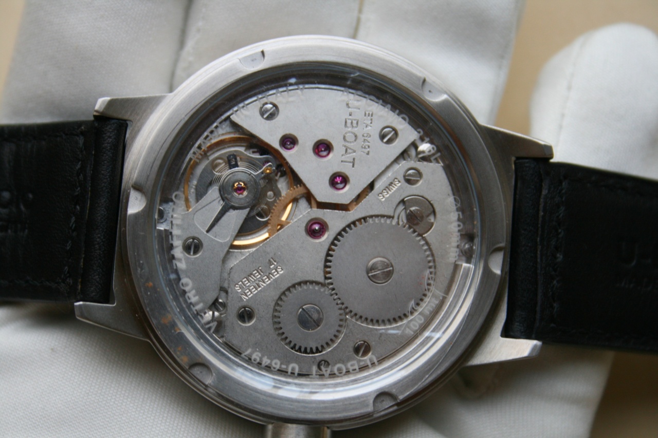 - внутри знаменитый механизм с ручным заводом ETA Unitas 6497 на 17 камнях