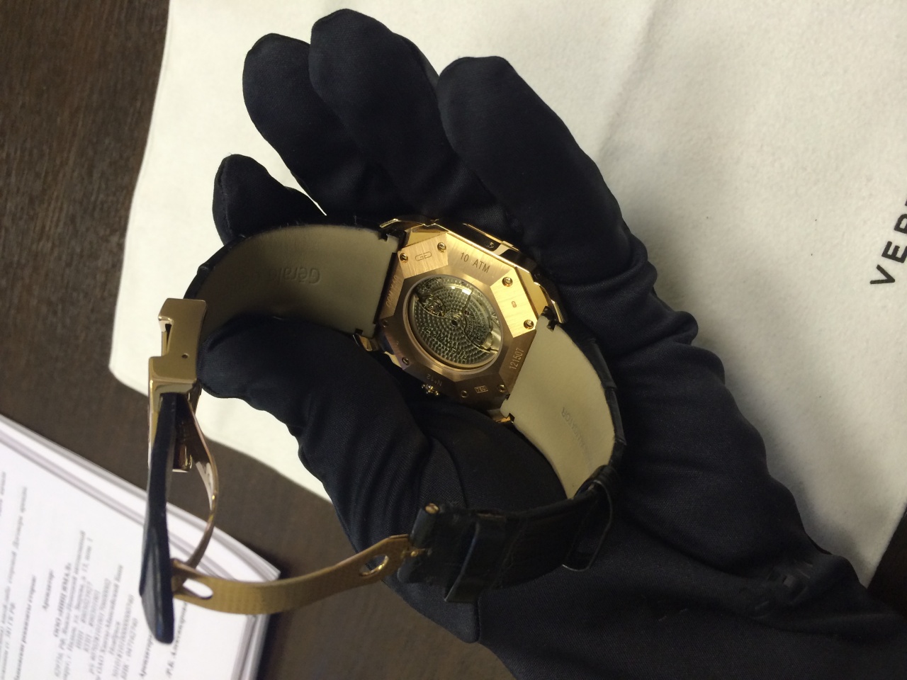Референс OQM.Y.50.525.CN.BD Механизм автоматический, Калибр GG 7080 Размеры корпуса 42.5 мм Корпус розовое золото, 18к Особенности Астрономические часы, Вечный календарь, Водостойкие Функции часы, минуты, дата, день недели, месяц, фаза луны Циферблат золотистый с черным Запас хода 45 часов Ремешок кожа аллигатора с золотой, 18к вставкой, откидная застежка Дополнительная информация водонепроницаемость 100 м, цикл високосного года, заводной ключ инкрустирован черным ониксом кабошоном