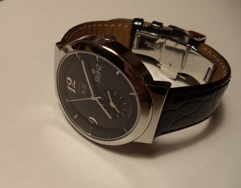 Пол часиков не определен, - некоторые сайты и вовсе помечают их, как женские. Мне они чуть великоваты (запястье 18 см), вчера обретен новый пиджачник. К часикам отдам старый Bunz’евский ремень и карденовский бокс в качестве упаковки.