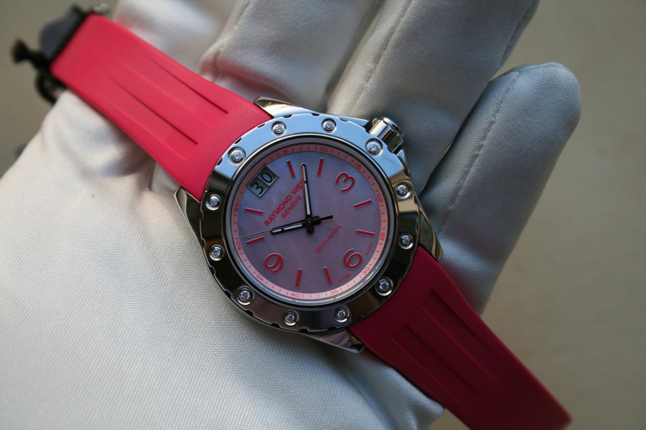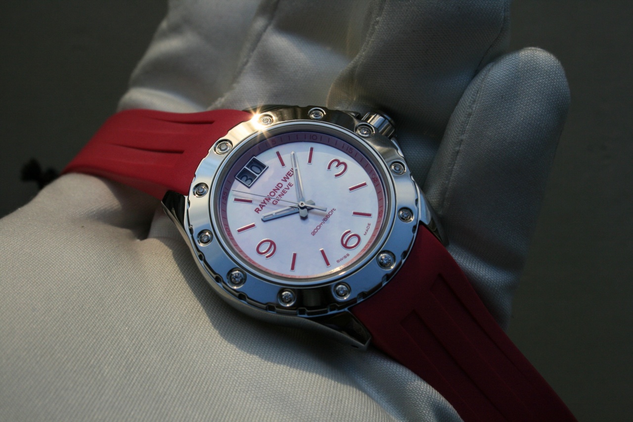 < < [женские 35 мм] RAYMOND WEIL SPIRIT ** 12 бриллиантов ** перламутр ** каучук > >