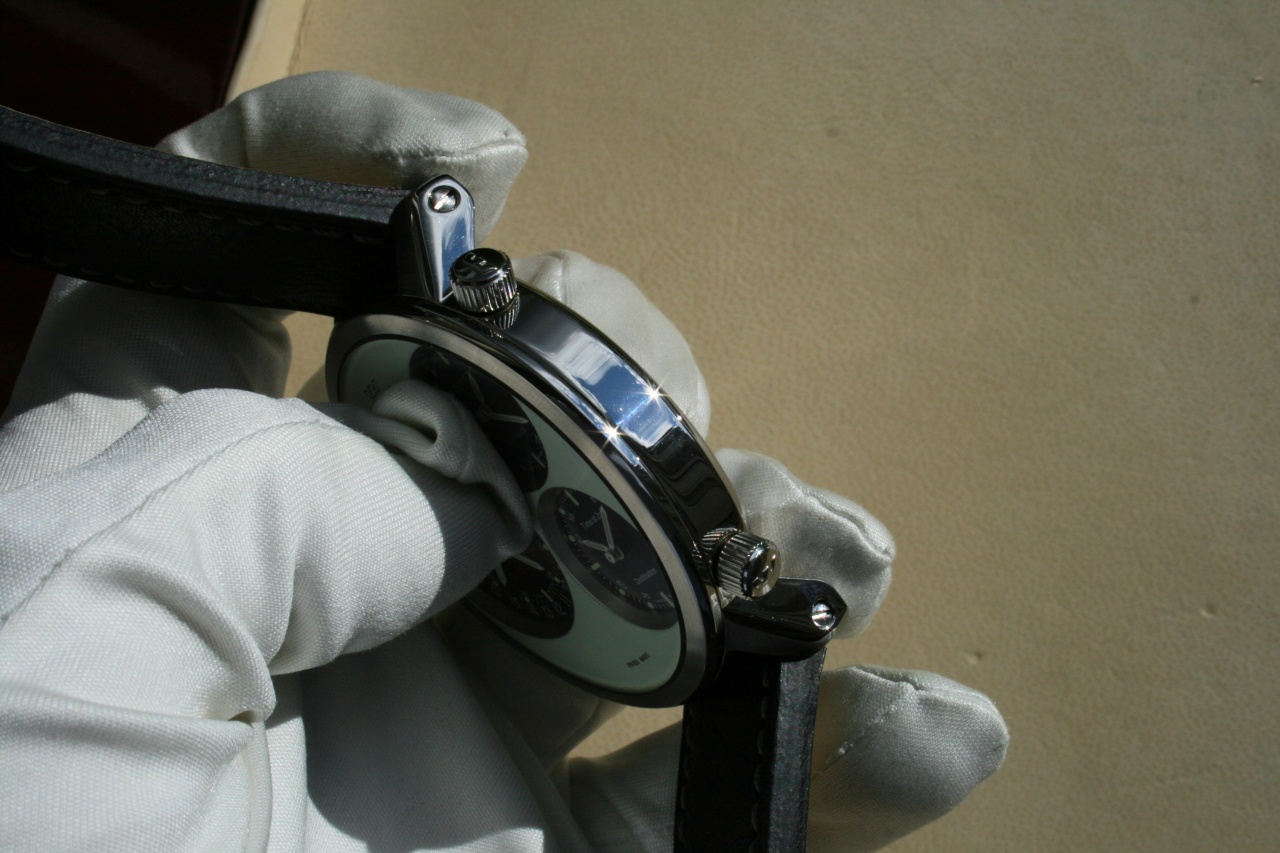 - в темноте светится весь цифербалт, кроме синих подциферблатов, а также стрелки и метки всех троих циферблатов
