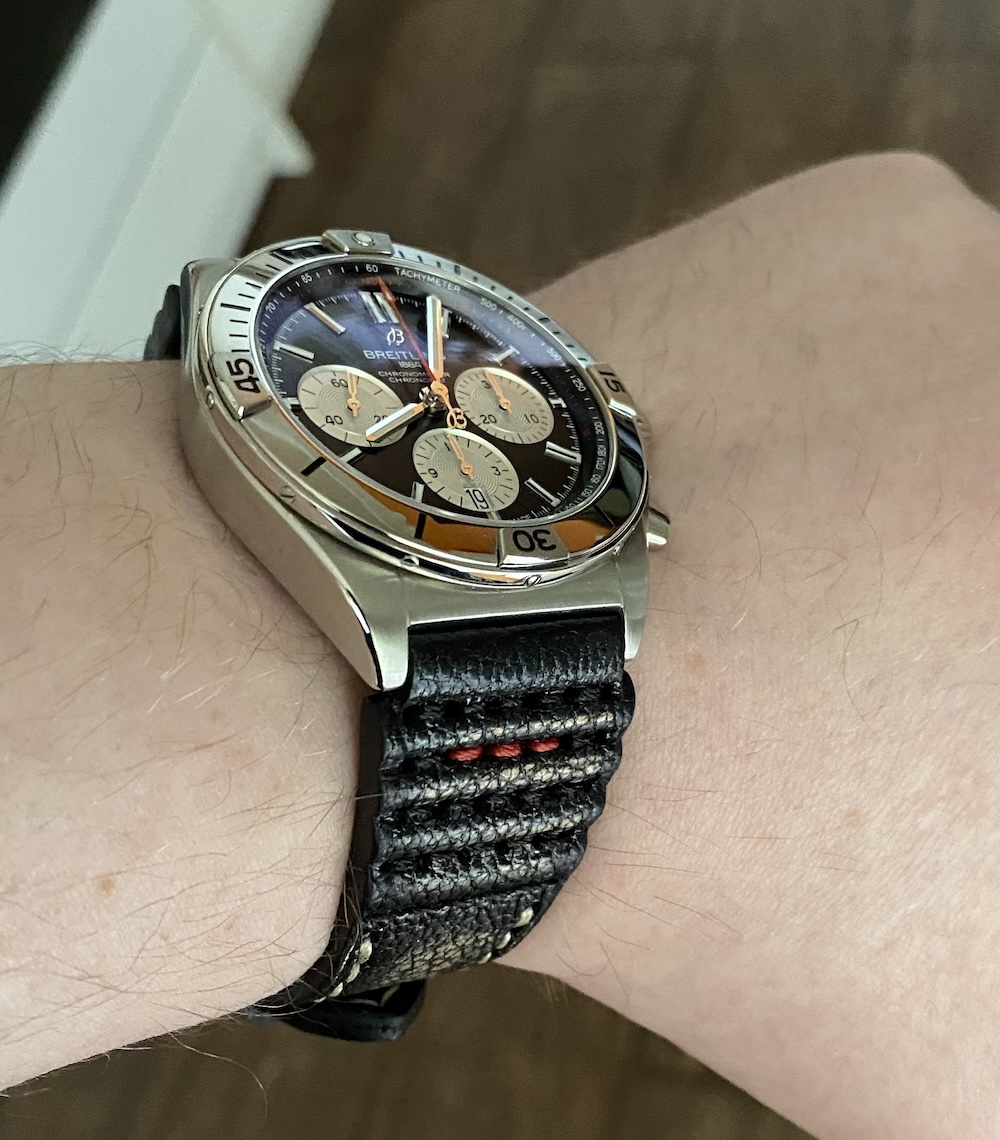 Chronomat B01 42 на браслете и на ремешке, сделанном на заказ с сохранением эстетики rouleaux / bullet.