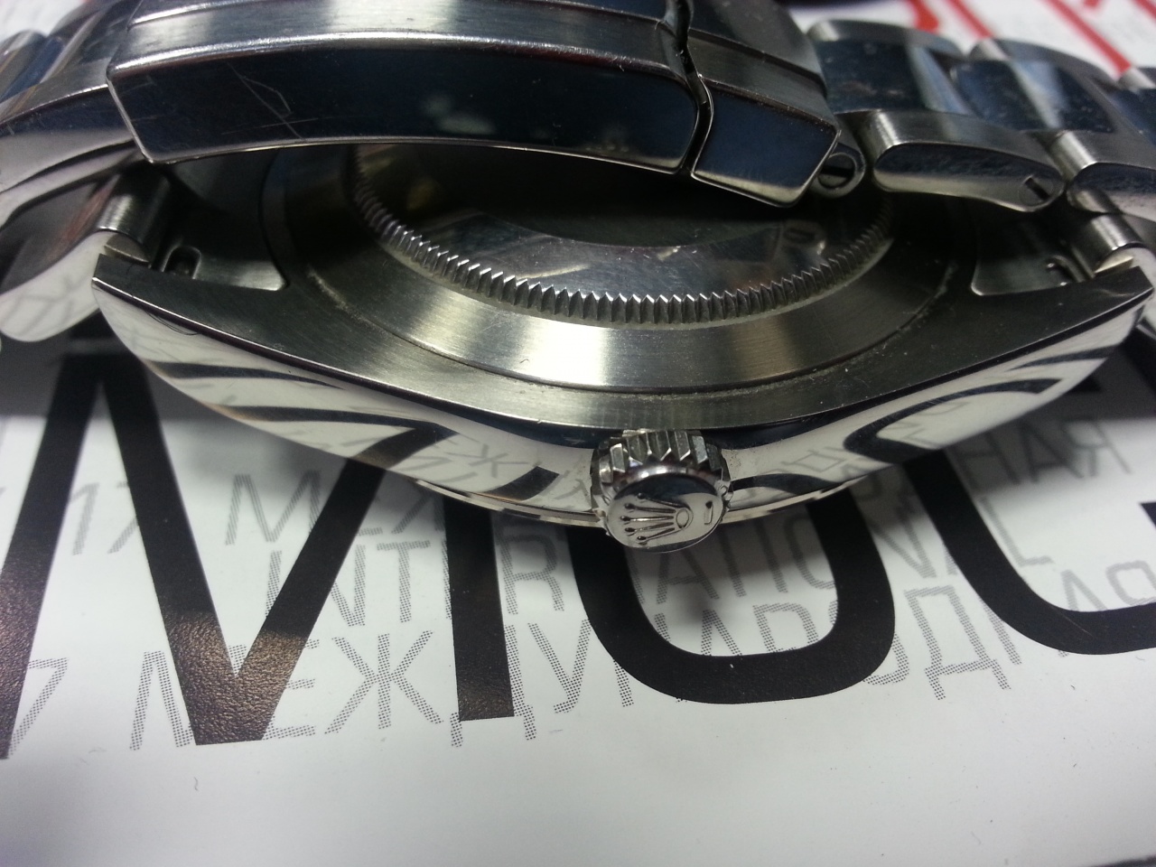 Состояние идеальное, за исключением потертости на замке браслета. Можно отполировать при необходимости. Рассмотрю обмен, если есть интересные варианты