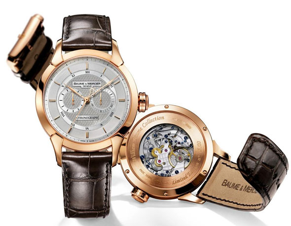 Все больше моделей появляется в элитной коллекции William Baume, теперь настало время и для хронографа. Произведенный ограниченной партией в 20 экземпляров, William Baume Monopusher Chronograph по традиции выполнен из 18К розового золота и имеет 41 мм в диаметре, узнаваемый циферблат серебренный с гильошированием «vieux panier». Сапфировые стекла с обеих сторон, водостойкость 30 метров. Механизм с ручным заводом от чрезвычайно востребованной в последнее время фабрики Lajoux-Perret (бывшая Jaquet Baume), калибр 5000, однокнопочный хронограф, с запасом хода 42 часа, частотой 21 600 пк/час, 21 камень. Впечатляет и рекомендованная цена на модель $30 500.