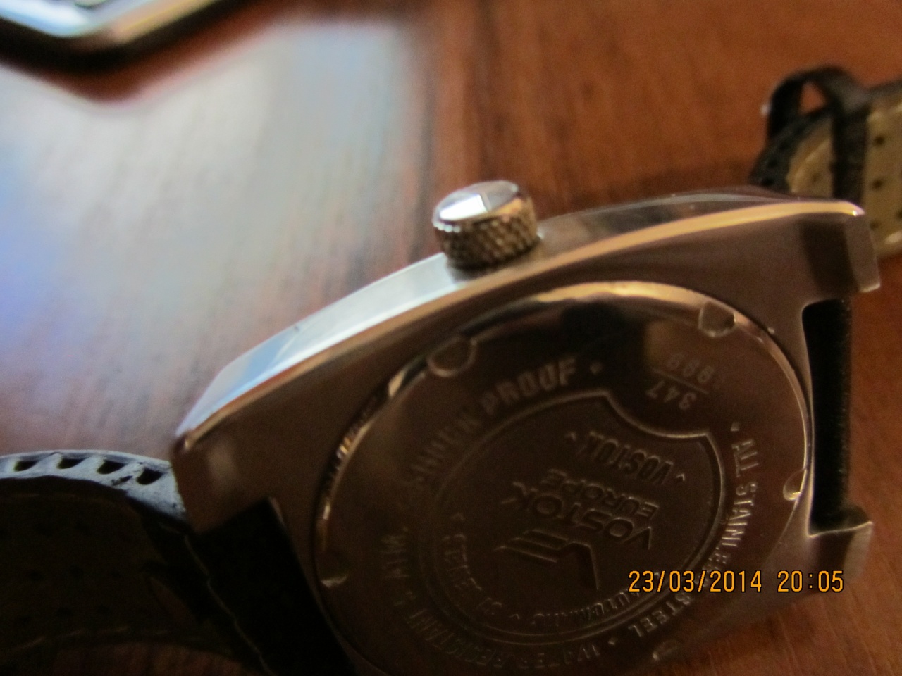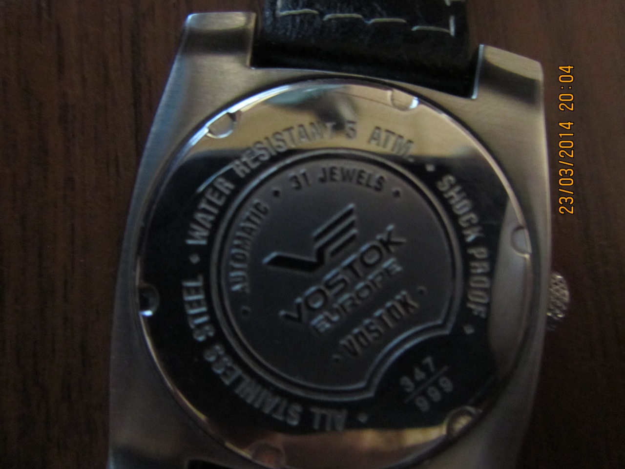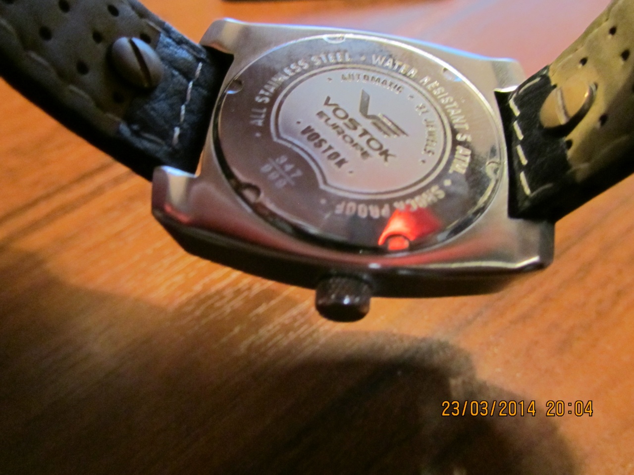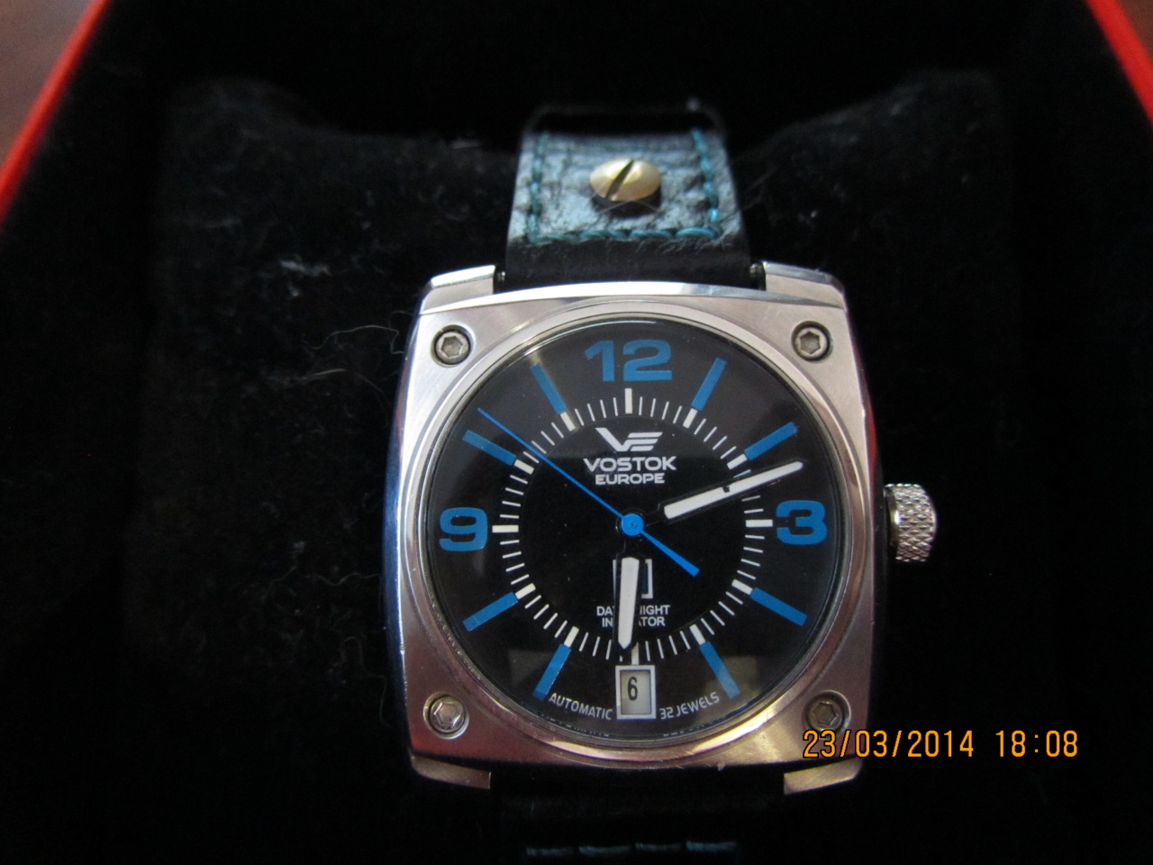 Лимитка Vostok Europe Луноход. 347/999. Механизм 2432 Куплены в декабре 2012 г. на Мераноме. Автоподзавод, индикатор день/ночь, стрелки и метки superluminova, завинчивающаяся задняя крышка, оригинальный кожаный ремешок водозащита 5 atm. Точность хода ~ -2 сек/сутки. Автомат работает без нареканий. Из минусов: сколот маленький кусочек люминофора на минутной стрелке (видно на фотографии).
