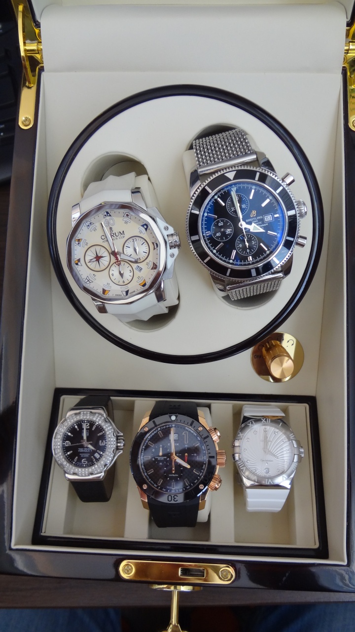 Casio, Seiko Kinetic, Romanson, Oakley, Panerai(копия- купил как сувенир в Таиланде-их не ношу,просто лежат), Breitling Super Ocean heritage Chrono 46mm, Corum Admirals Cup 44mm, Swiss Military Oceanic, EDOX CLASS-1 Chronoffshore Big Date, Mares Nemo Excel(дайв компутер,но время показывает