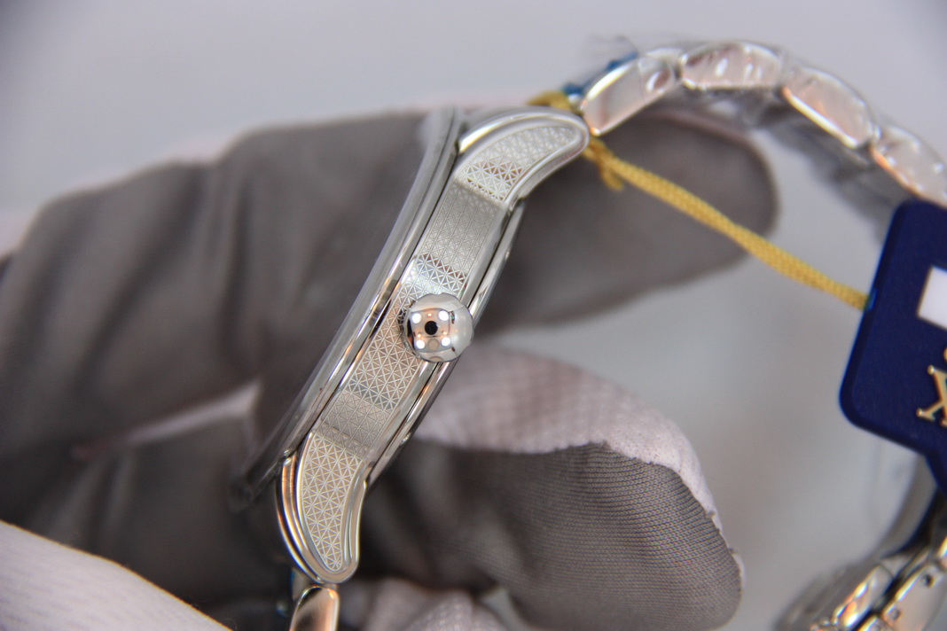 Механизм: кварцевый; ретроградный календарь, большая дата, часы, минуты, секунды на отметке 6 часов.
