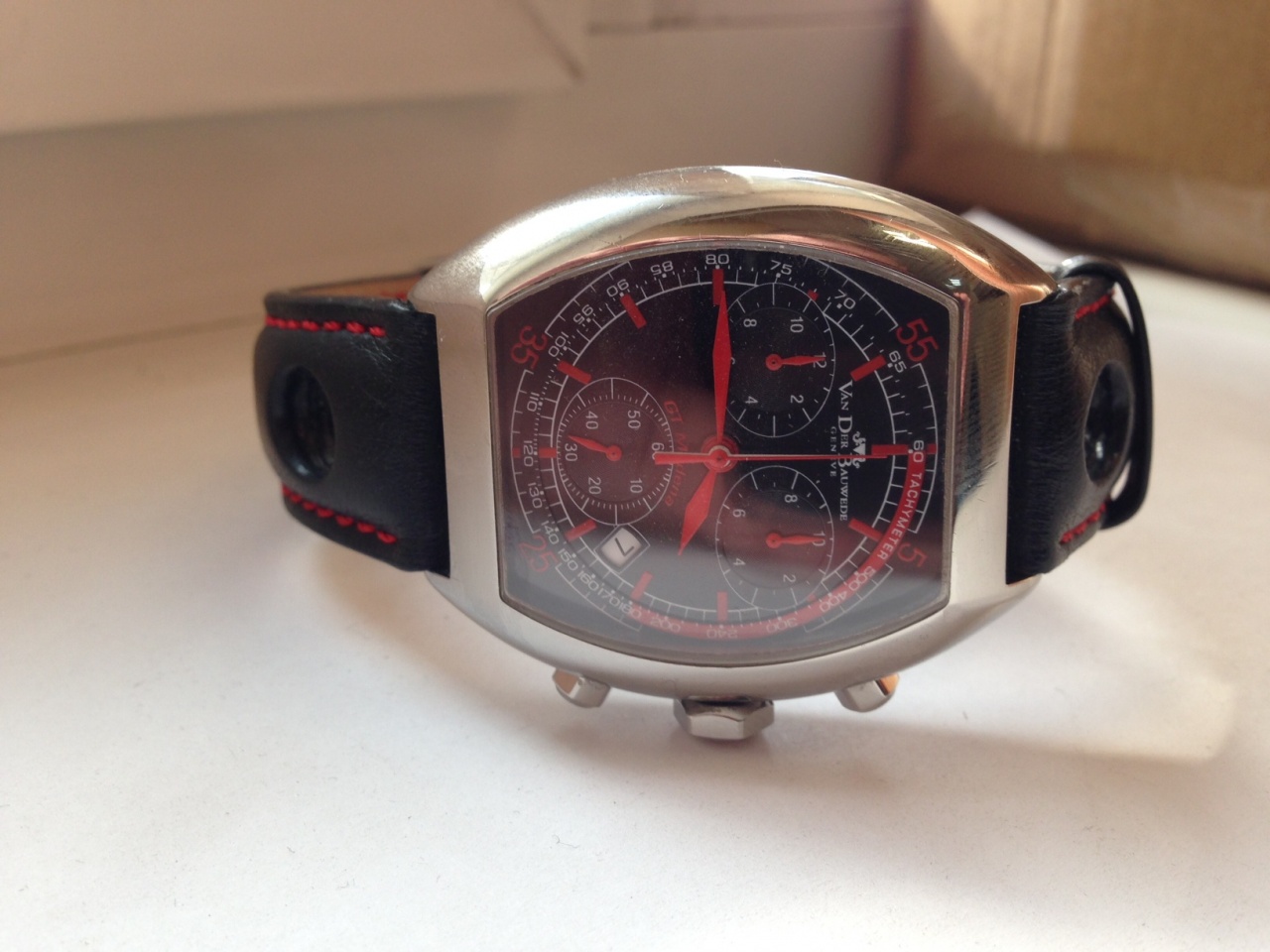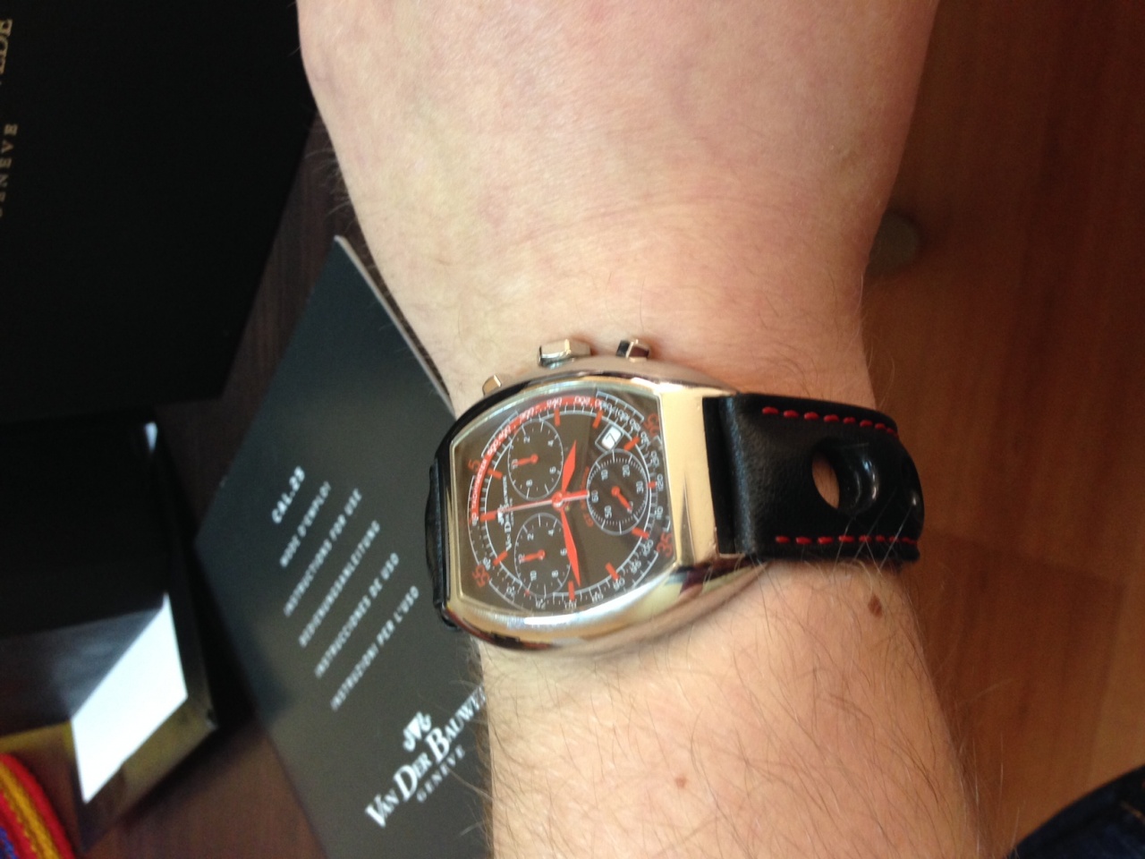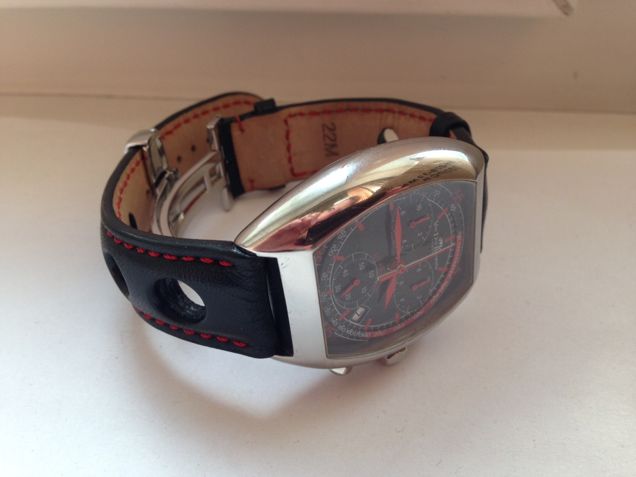 на часах стоит ШИКАРНЫЙ ремешок с красной строчкой