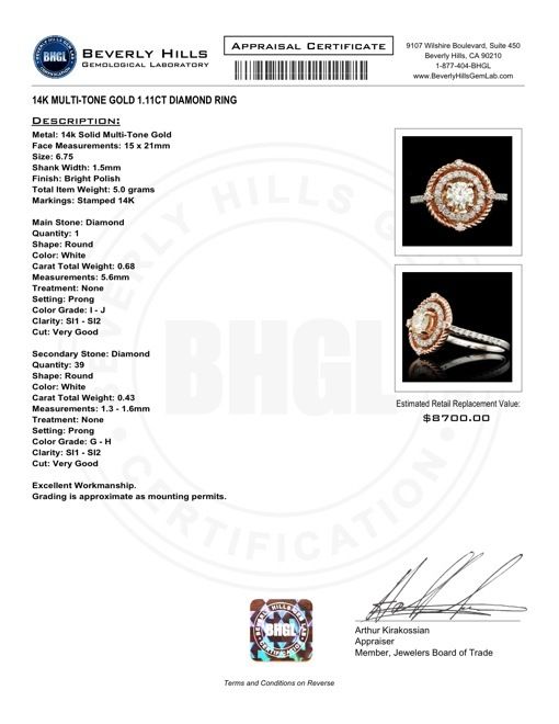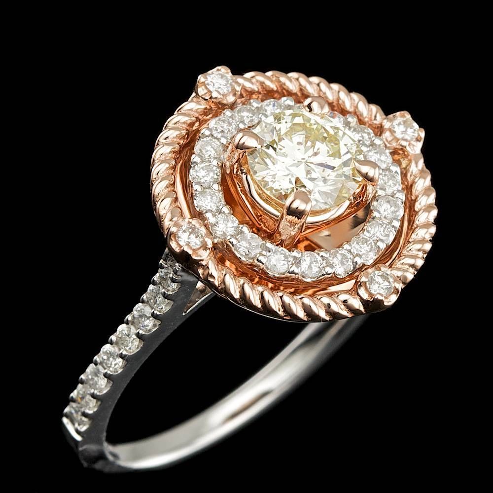 ~~~Кольцо~Белое и розовое золото~Бриллианты 1,11 карат~Сертификат BHGL~~~