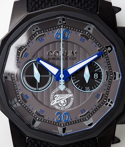 - Фирменная отделка Corum, включая черное PVD-покрытие и выгравированное название марки на инерционном секторе