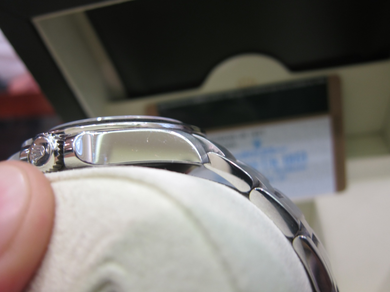 Часы куплены около года назад. Корпус в состоянии близком к идеалу. Есть небольшая царапина сбоку над заводной головкой. Забоин нет. Дата в гарантии открытая.