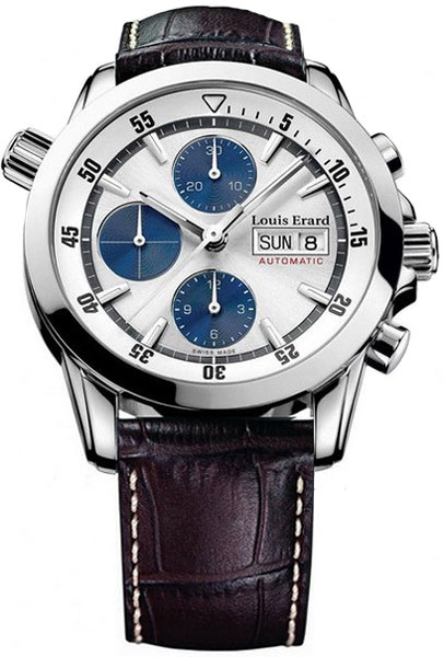 Louis Erard Sportive 78410AA11 - мужские механические часы. Корпус этих часов среднего размера (42 мм.) и выполнен из нержавеющей стали. Модель Sportive 78410AA11 имеет сапфировое стекло, кожаный ремешок чёрного цвета, серебристый циферблат. Водоустойчивость: 50 метров. Дополнительные функции и особенности: дата, день недели, хронограф. Полная заводская комплектация Louis Erard, гарантия 2 года.