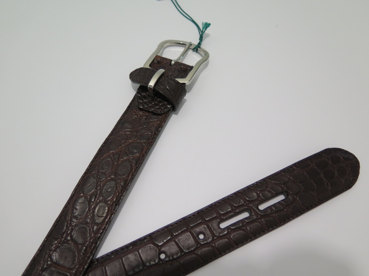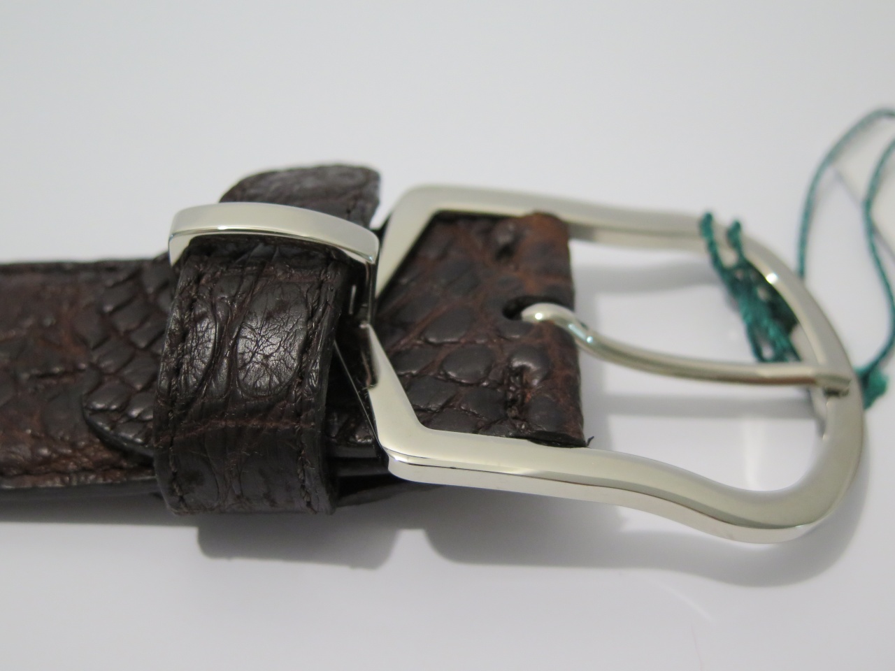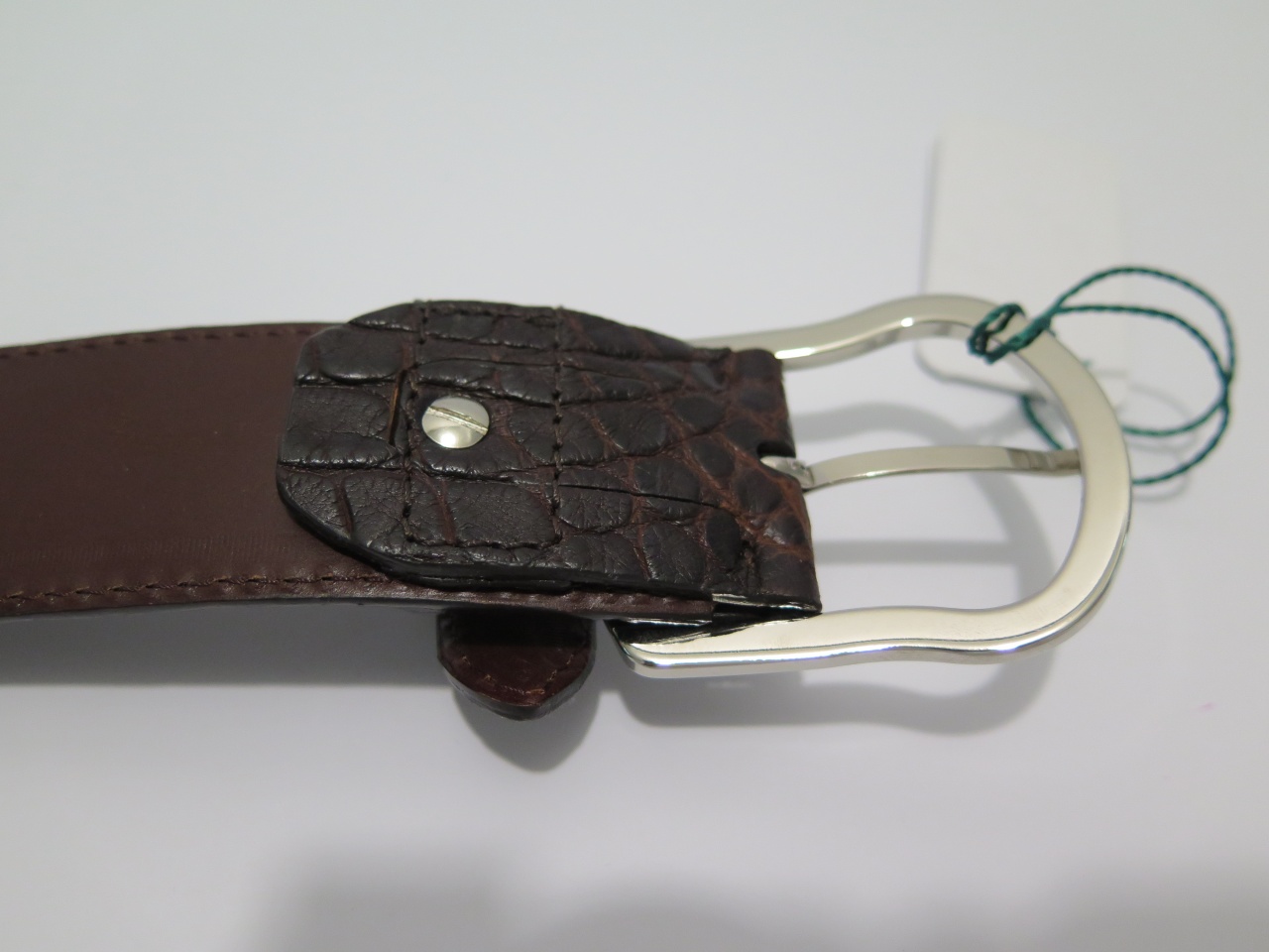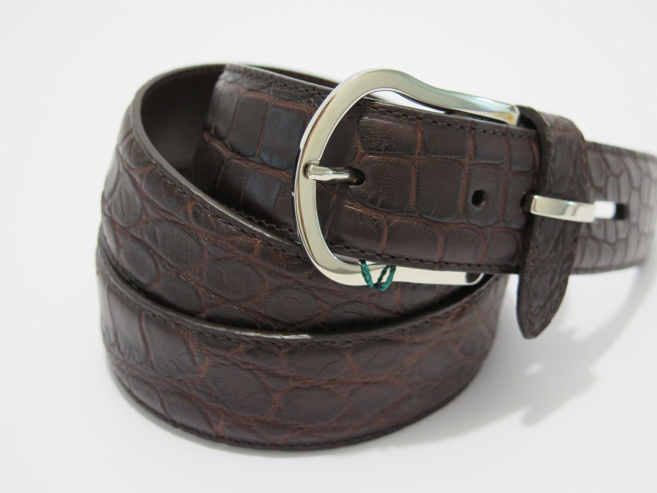 Темно-коричневый мужской ремень ручной работы Brianza, изготовлен из 100% кожи миссисипского аллигатора высочайшего качества выделки. Прямоугольная пряжка запатентованной конструкции изготовлена из никеля, покрытого палладием. Крепление пряжки ремня на одном съемном болте, позволяет легко укорачивать ремень до нужного размера. Толщина ремня составляет 4,0 см., что позволяет носить его как с брюками, так и с джинсами.
