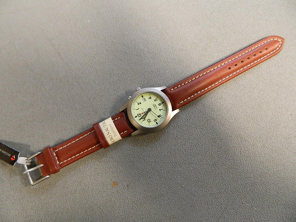 Часы сделаны в стиле «милитари», но это милитари не мрачное, а веселое из-за циферблата. Представьте себе общеизвестный Traser P5900 Type 3, но местами с точностью до наоборот. Также как и в 5900, здесь относительно широкий безель и относительно небольшой циферблат (ощущение некрупности оного усиливается длинными рисками по периметру и небольшими цифрами напротив них). С другой стороны, у 5900 черный циферблат, в темноте неярко светятся 2 колбочки на стрелках и 12 точек по циферблату. У этих часов люминисцирует весь циферблат, в темноте я (в очках) различаю черные риски, цифры и стрелки. И это при моем зрении +2,0D (без очков в темноте мелких рисок не вижу, на свету – без проблем). Только для этого нужно, что бы часы побыли хотя бы около часа на свету (достаточно рассеянного дневного света в комнате).