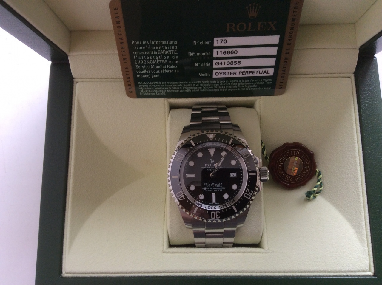 Реф. 116660, размер корпуса - 44 мм, стекло - сапфир, тип калибра - автоматический, водонепроницаемость - 3900 м. Часы приобретены 06.11.2012 г. у официального дилера Rolex, коробка и все документы, в т. ч. чек в наличии.