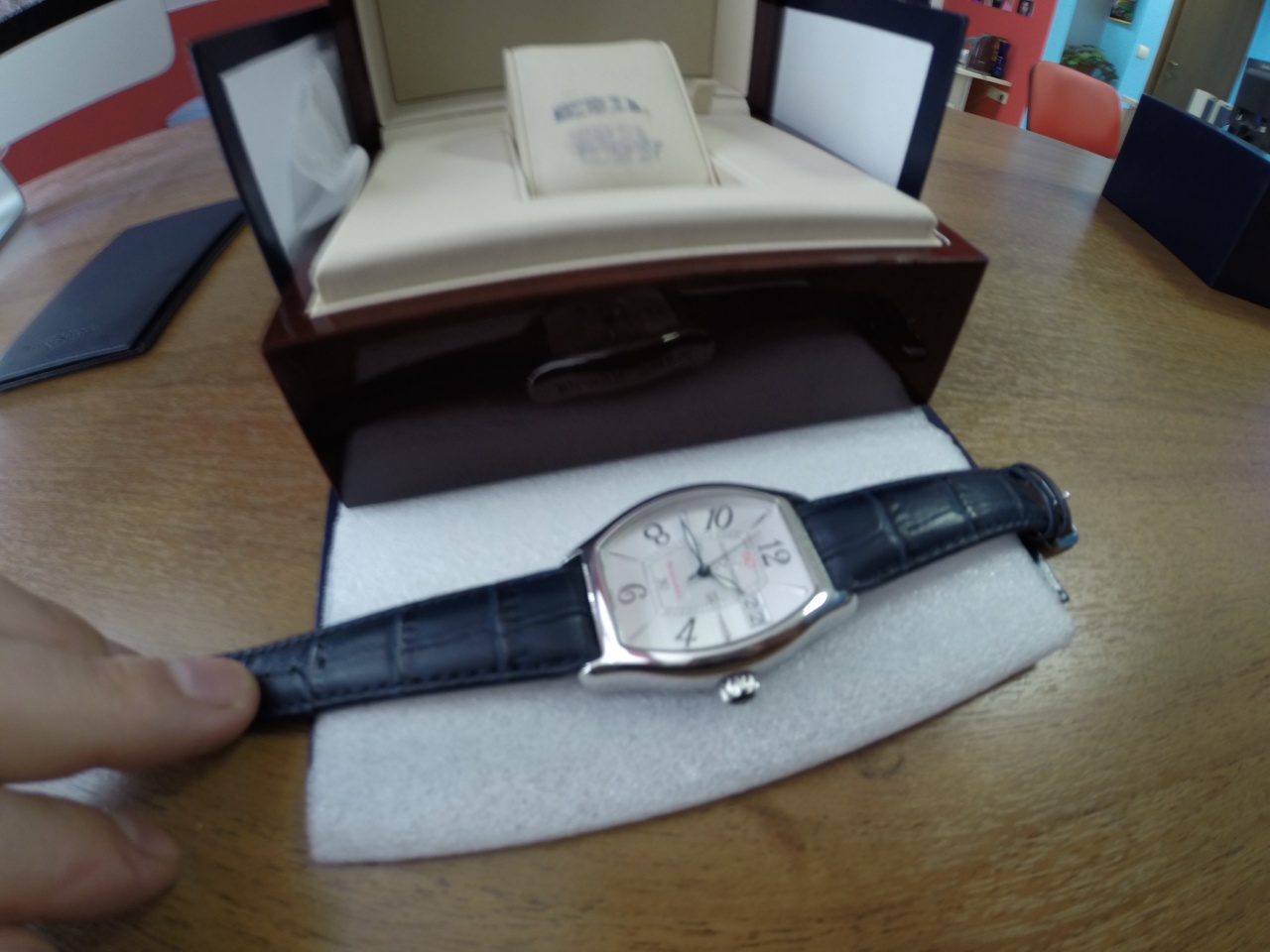 Ремешок на часах новый, темно-синий в цвет стрелок, очень красивый.