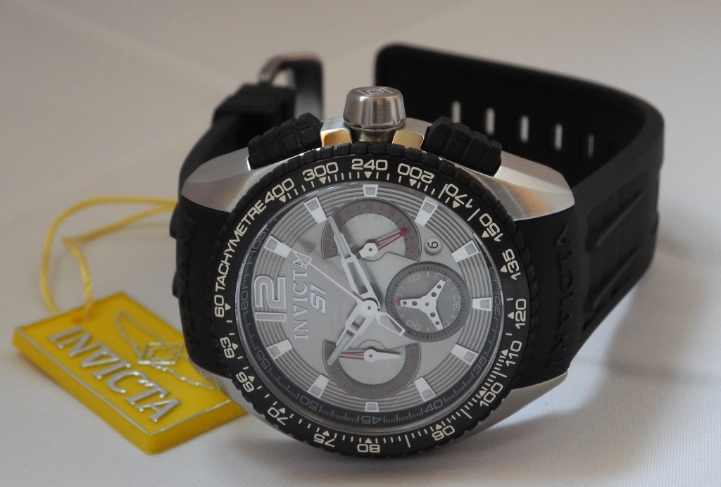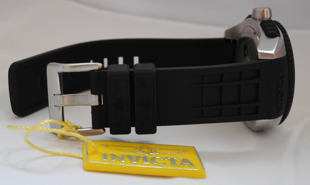 Особенности: брутальный мужской хронограф, подойдут на крупное запястье, яркий, современный и запоминающийся дизайн, плюс высочайшее качество производства делают часы Invicta хорошим выбором для покупателей со средним достатком, ценящих оригинальность, точный кварцевый калибр, безель с храповиком, вращающийся в одну сторону, дата расположена между отметками 4-х и 5-ти часов, люминесцентные стрелки и метки, в пленке, полный комплект