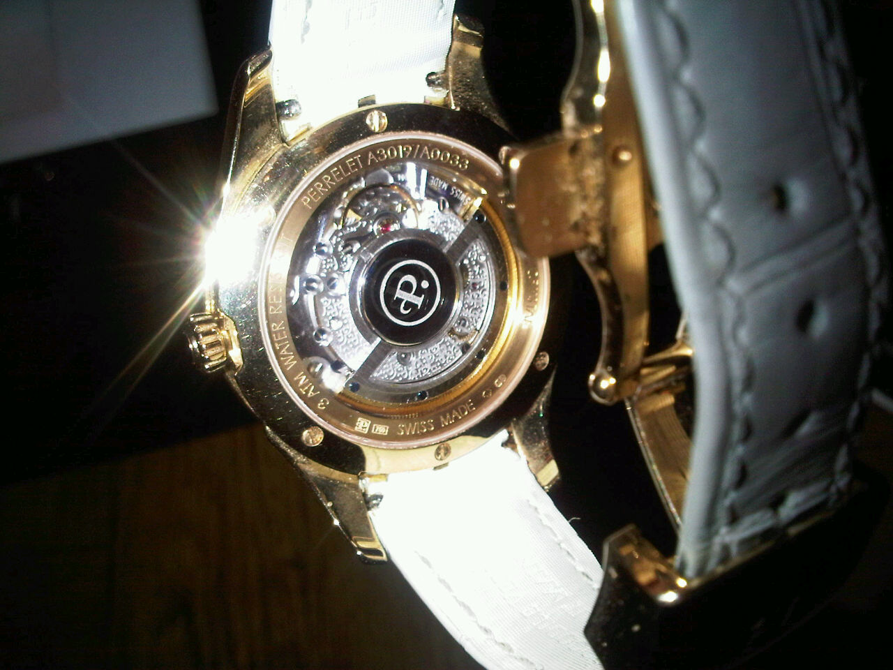 Два ротора. В механизме 21 камень, частота 28800 полуколебаний в час. Противоударная система. Запас хода 40 часов. Заводная головка украшена камнем в форме кабошона.