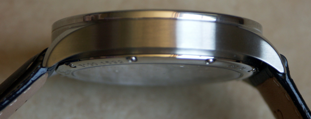 Первое, что бросается в глаза, обгоняя второе, – достаточно большой для гномов и предельный для Белоснежки размер – 44 мм. Вторым бросается, догоняя первое – плоское стекло. Это делает часы более тонкими на вид. Херр Штангенцикуль показал миллиметров 11 в толщину.