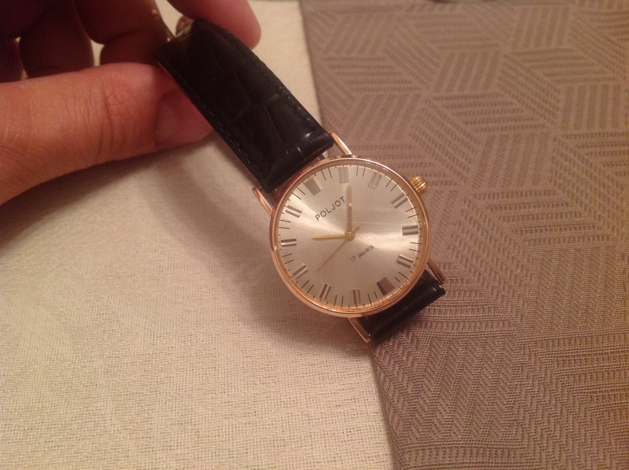 Для повседневного ношения золотые часы на кварцевом механизме Миёта и циферблатом Полёт из СССР. Циферблат в идеальное состоянии, лучистый и яркий. Есть одна мелкая царапина на стекле. Ни корпус ни циферблат не подпиливались, только удалены ножки, всё встало как "родное". Вес самого корпуса около одиннадцати грамм.