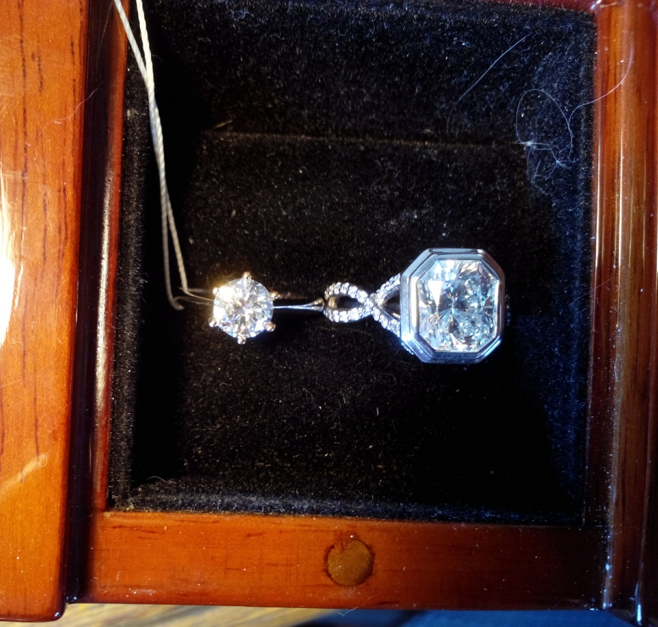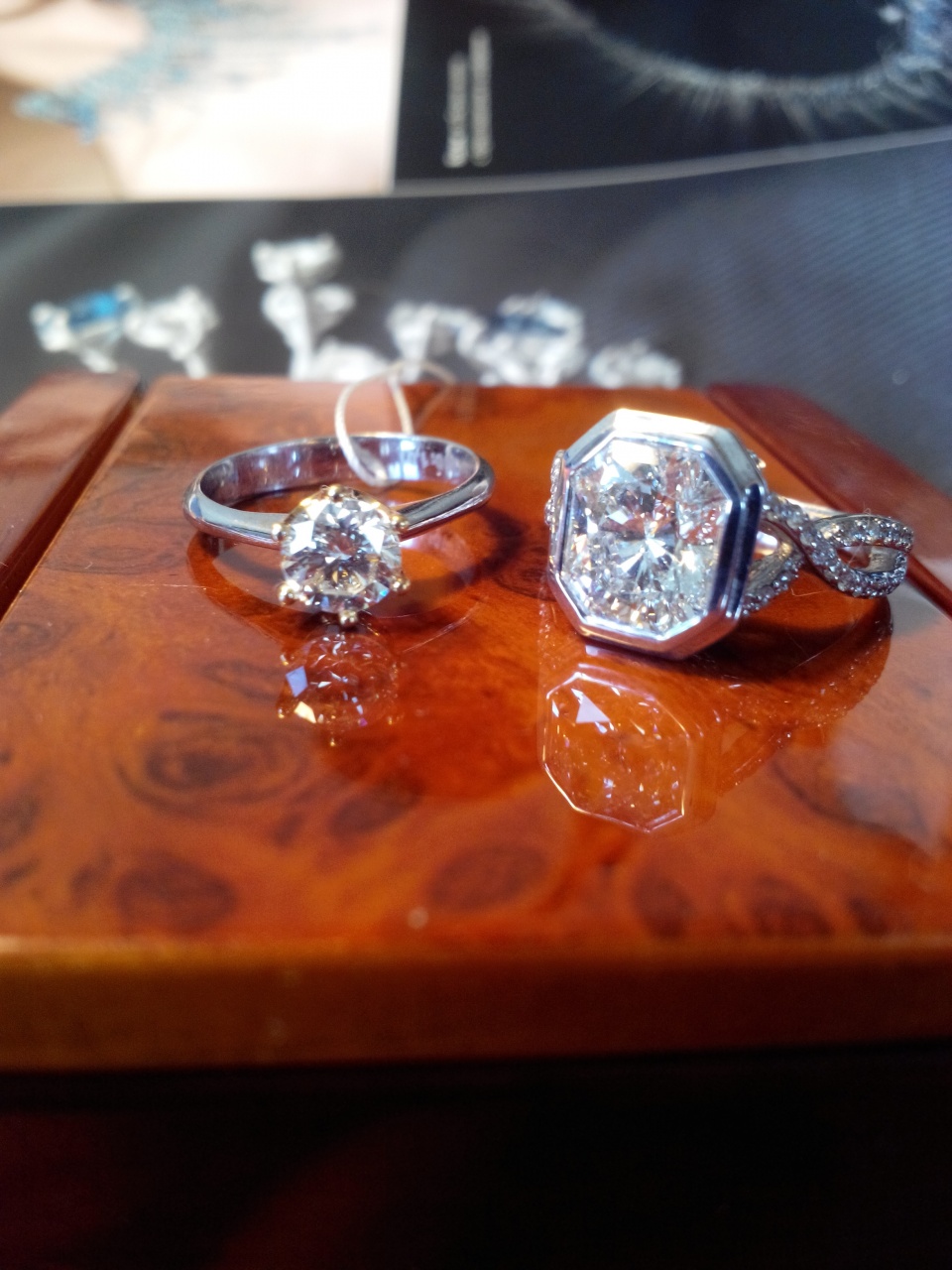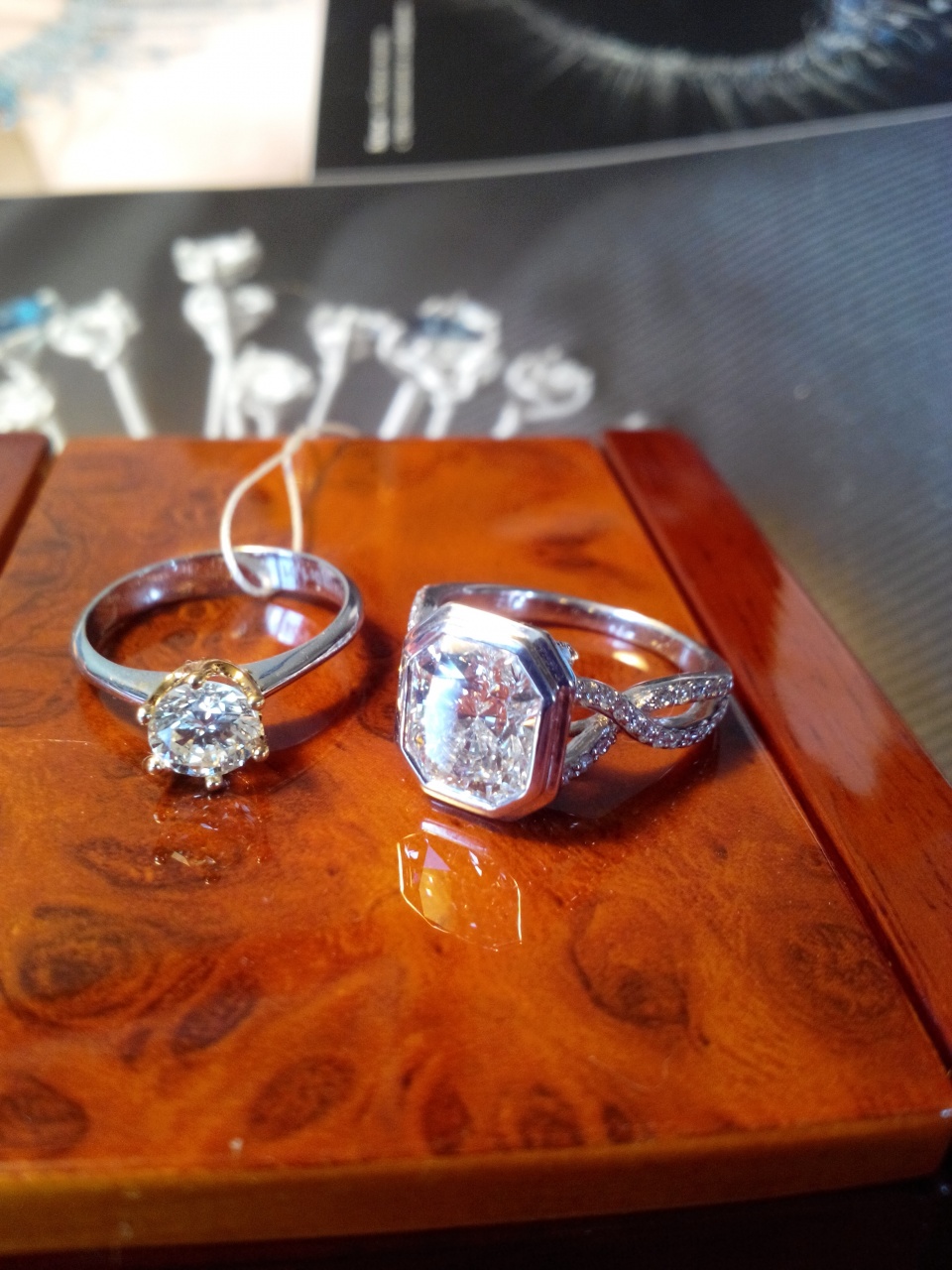 несколько фото рядом с кольцом с бриллиантом 1.01 карат (для понимания размера камня)