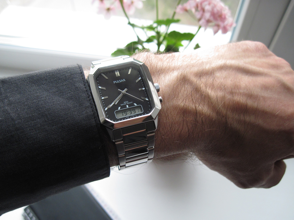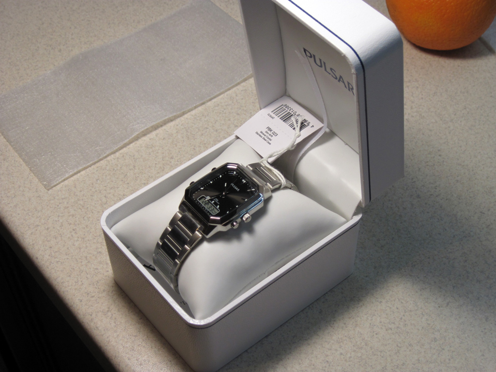 Электронные часы - металл + стекло - без наворотов, до 100$". Так как, отчаявшийся найти устраивающие меня новые, не б/у, чисто цифровые "металл + стекло", приобрёл этот Pulsar.